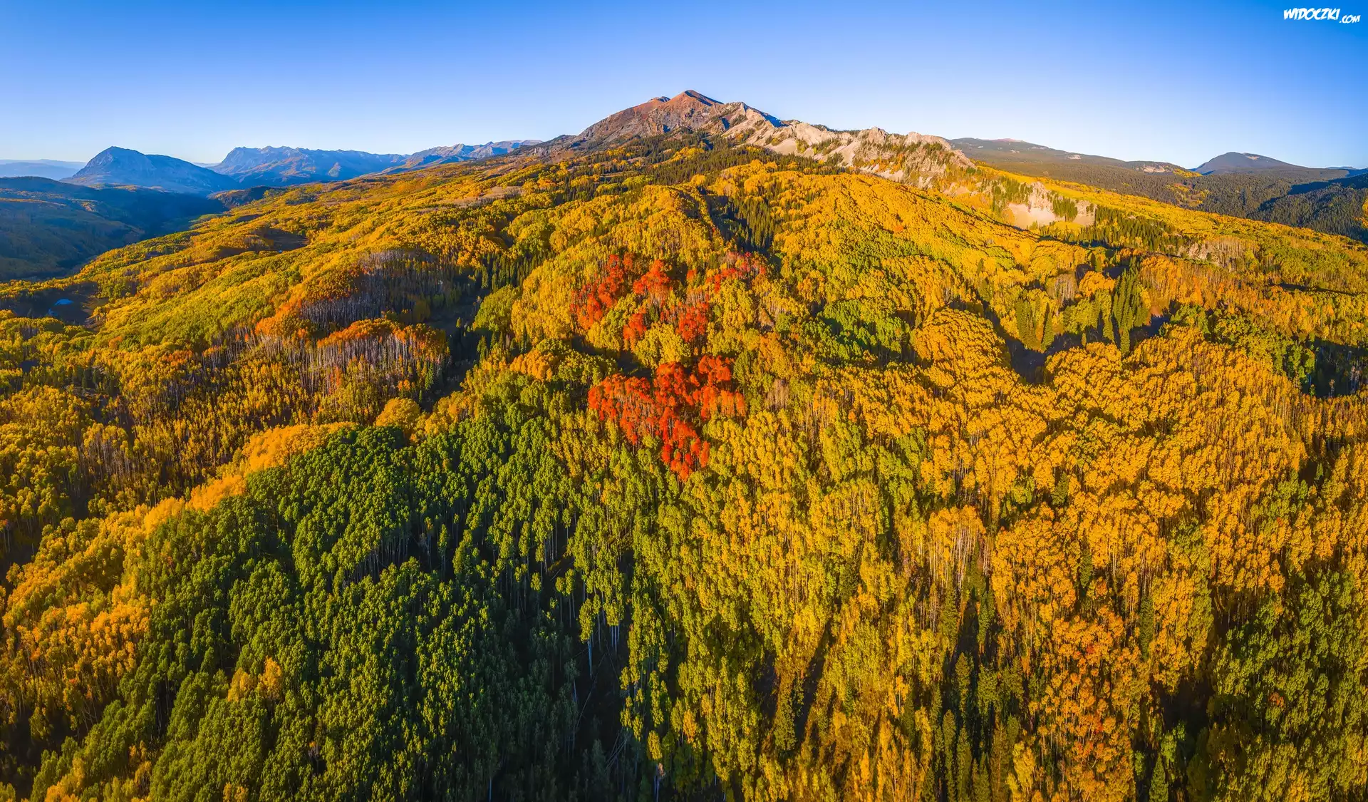 Zdjęcia, Stany Zjednoczone, Kolorado, Przełęcz, Kebler Pass, Góry, Las, Drzewa, Jesień