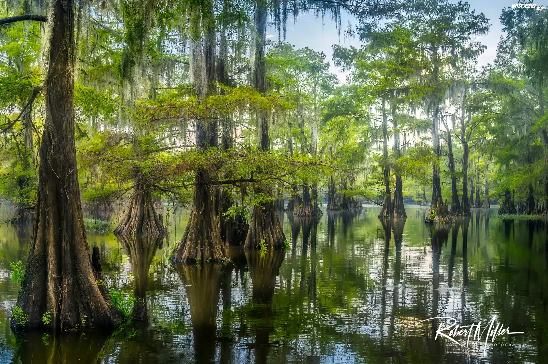 Zdjęcia, Stany Zjednoczone, Teksas, Jezioro, Caddo Lake, Drzewa, Cyprysy bagienne