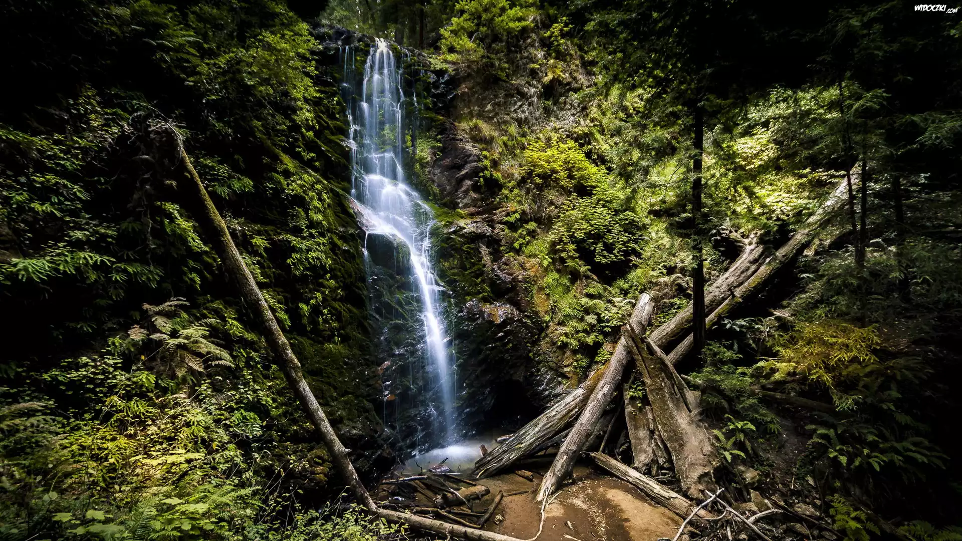 Stany Zjednoczone, Kalifornia, Park stanowy Big Basin Redwoods State Park, Wodospad Berry Creek Falls, Drzewa |