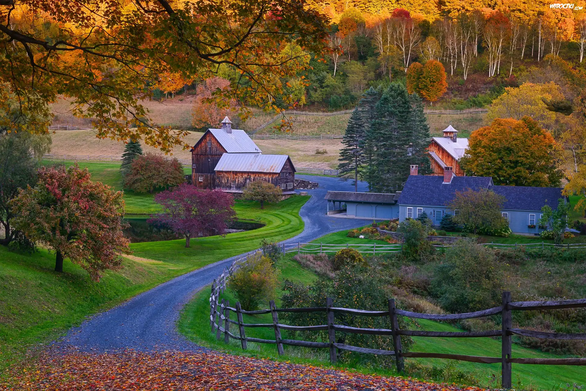 Zdjęcia, Stany, Zjednoczone, Wioska, Droga, Jesień, Las