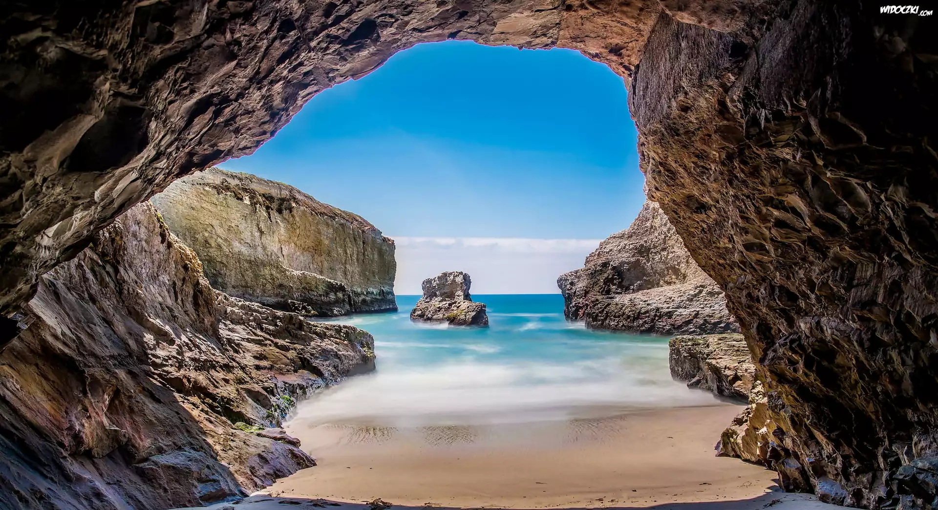 Stany Zjednoczone, Stan Kalifornia, Morze, Ocean Spokojny, Plaża Shark Fin Cove, Skały, Jaskinia