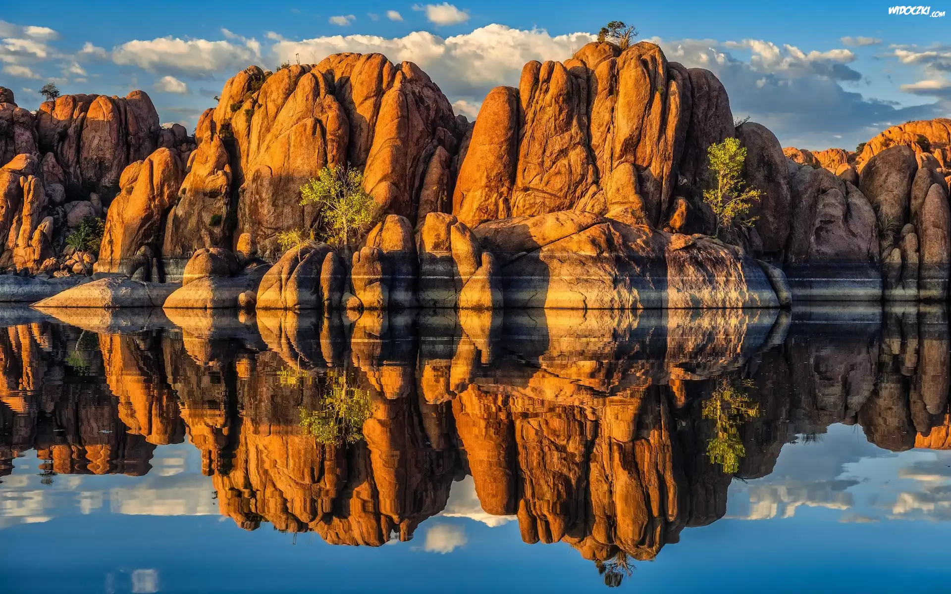 Zdjęcia, Stany Zjednoczone, Arizona, Prescott, Jezioro, Watson Lake, Skały, Odbicie