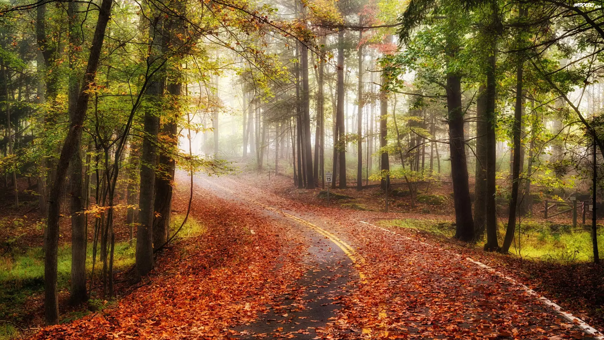 Stany Zjednoczone, Stan Wirginia Zachodnia, Park Narodowy New River Gorge National River, Jesień, Droga, Las, Mgła |