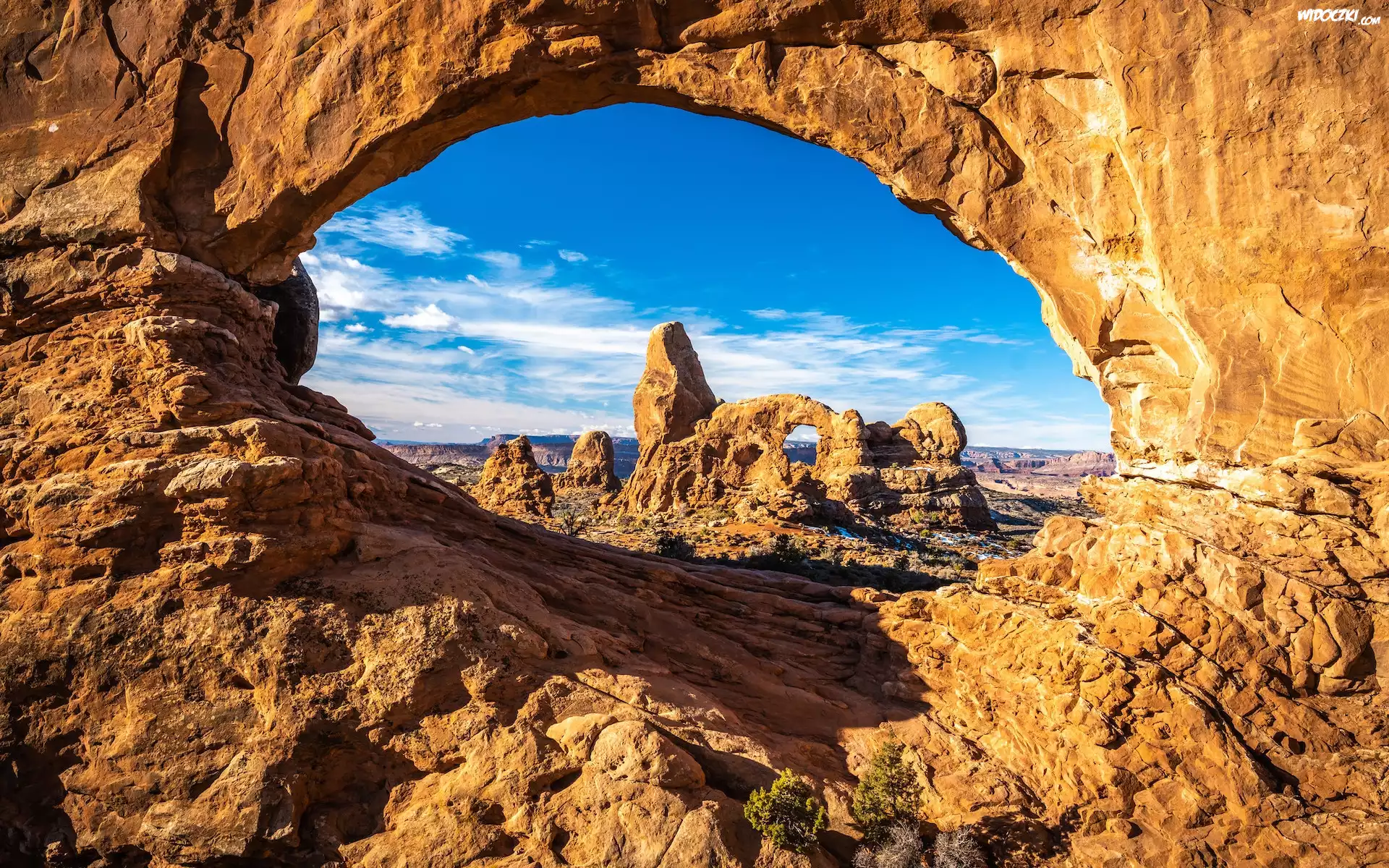 Stany Zjednoczone, Utah, Park Narodowy Arches, Skały, Formacja skalna, Turret Arch, Łuki, Skalne