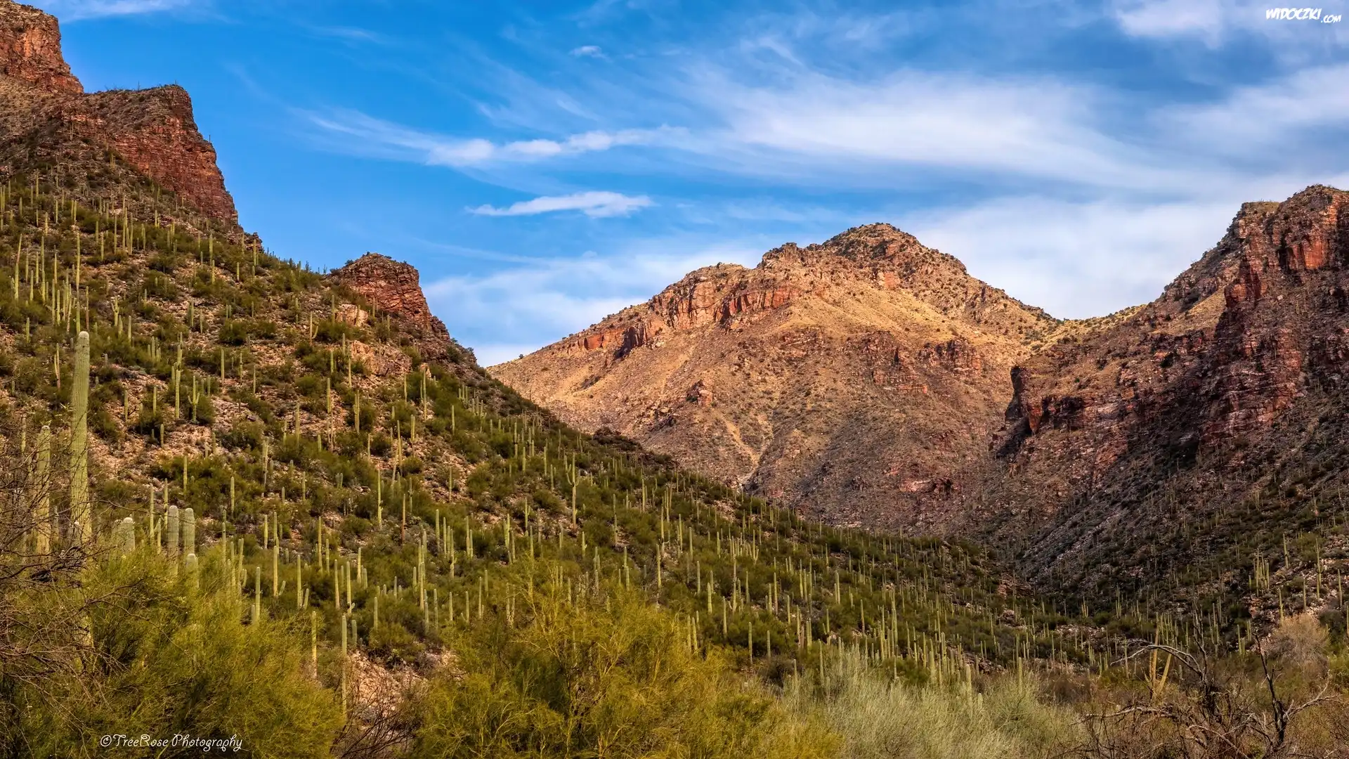 Zdjęcia, Stany Zjednoczone, Arizona, Tucson, Góry, Wąwóz, Sabino Canyon, Roślinność, Kaktusy