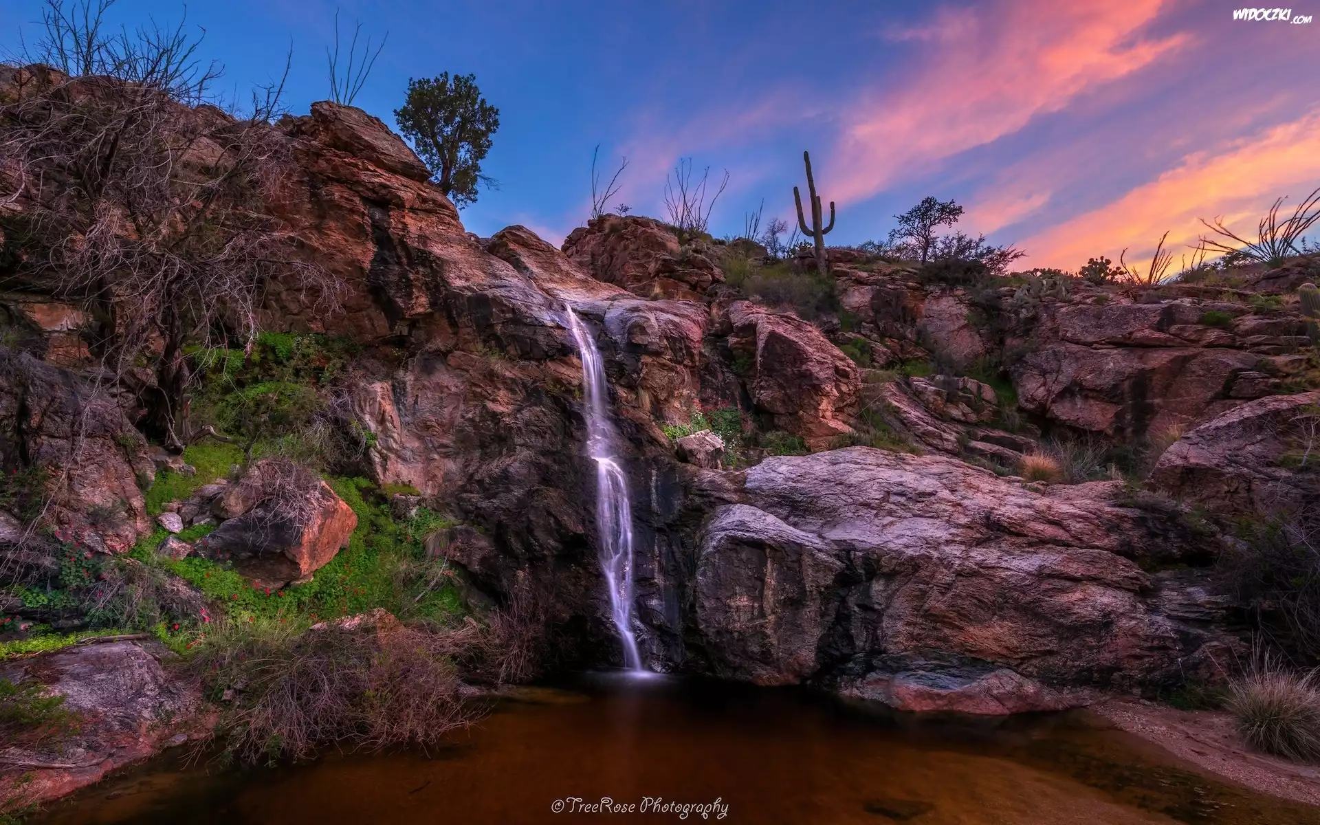 Zdjęcia, Stany Zjednoczone, Arizona, Tucson, Park Narodowy Saguaro, Skały, Wodospad