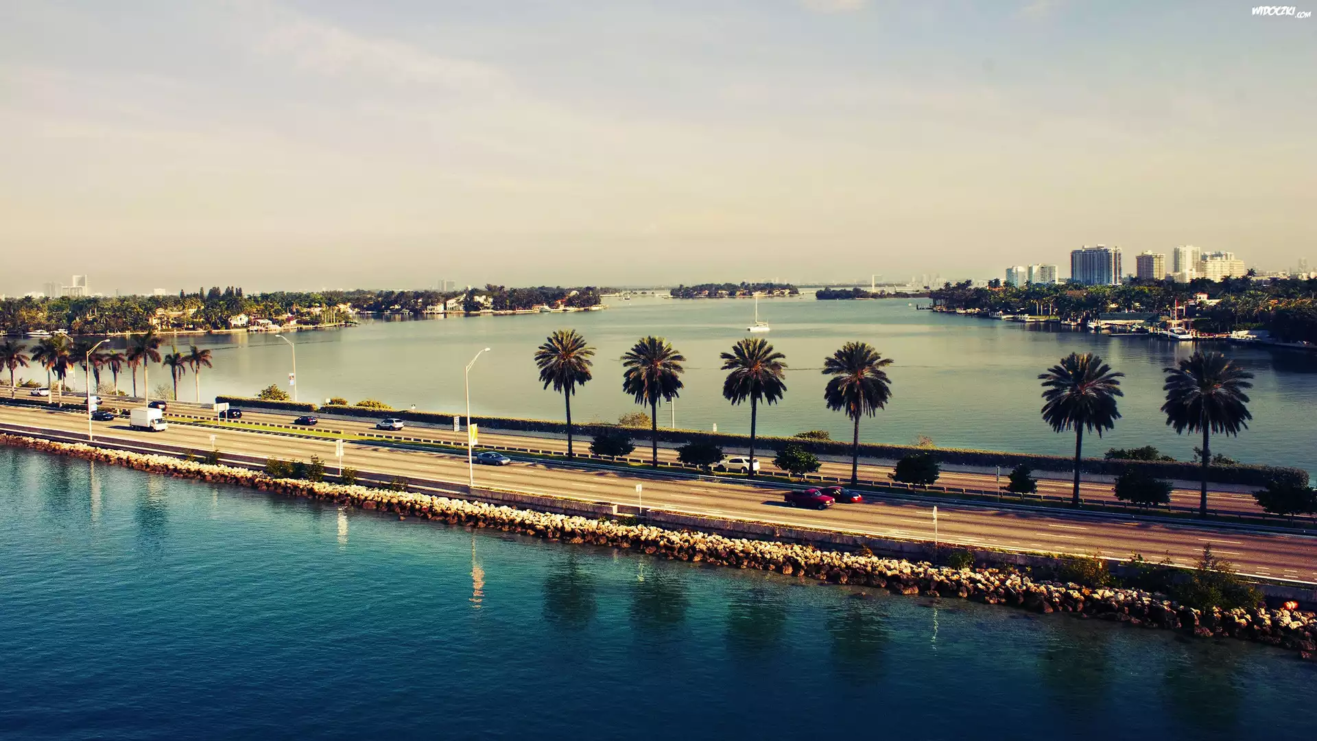 Stany Zjednoczone, Miami, Droga, Samochody, Palmy