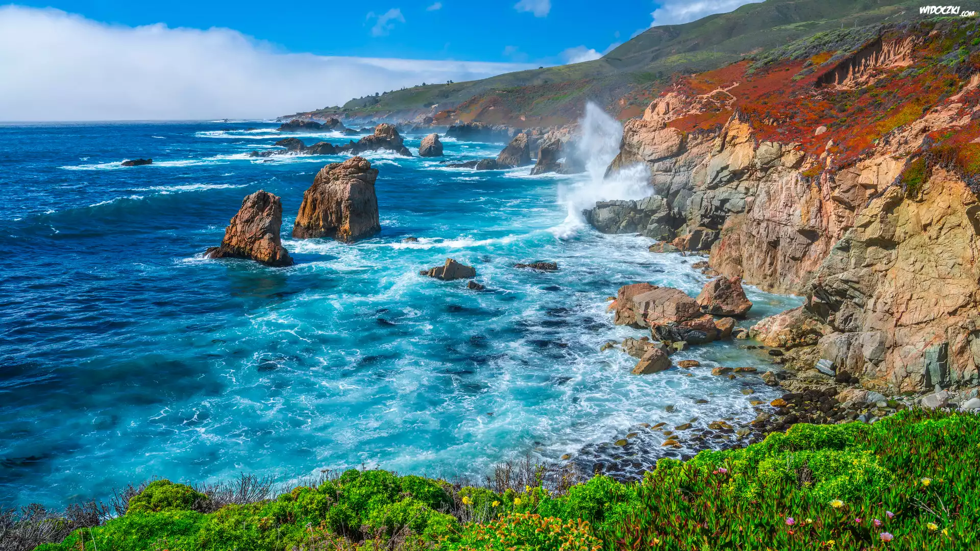 Zdjęcia, Stany Zjednoczone, Kalifornia, Big Sur Beach, Wybrzeże, Morze, Zatoka, Skały