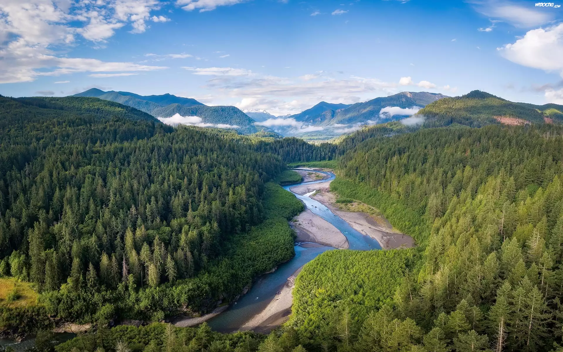 Stany Zjednoczone, Stan Waszyngton, Park Narodowy Olympic, Rzeka, Elwha River, Góry, Olympic Mountains, Lasy, Zielone, Drzewa |