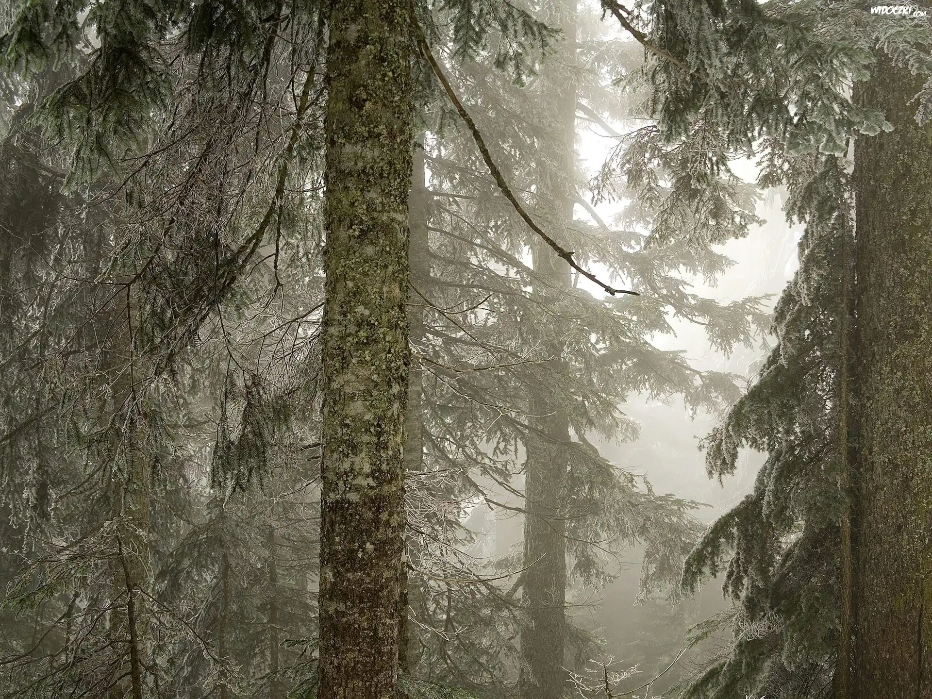 Zdjęcia, Stare, Drzewa, Las, Mgła