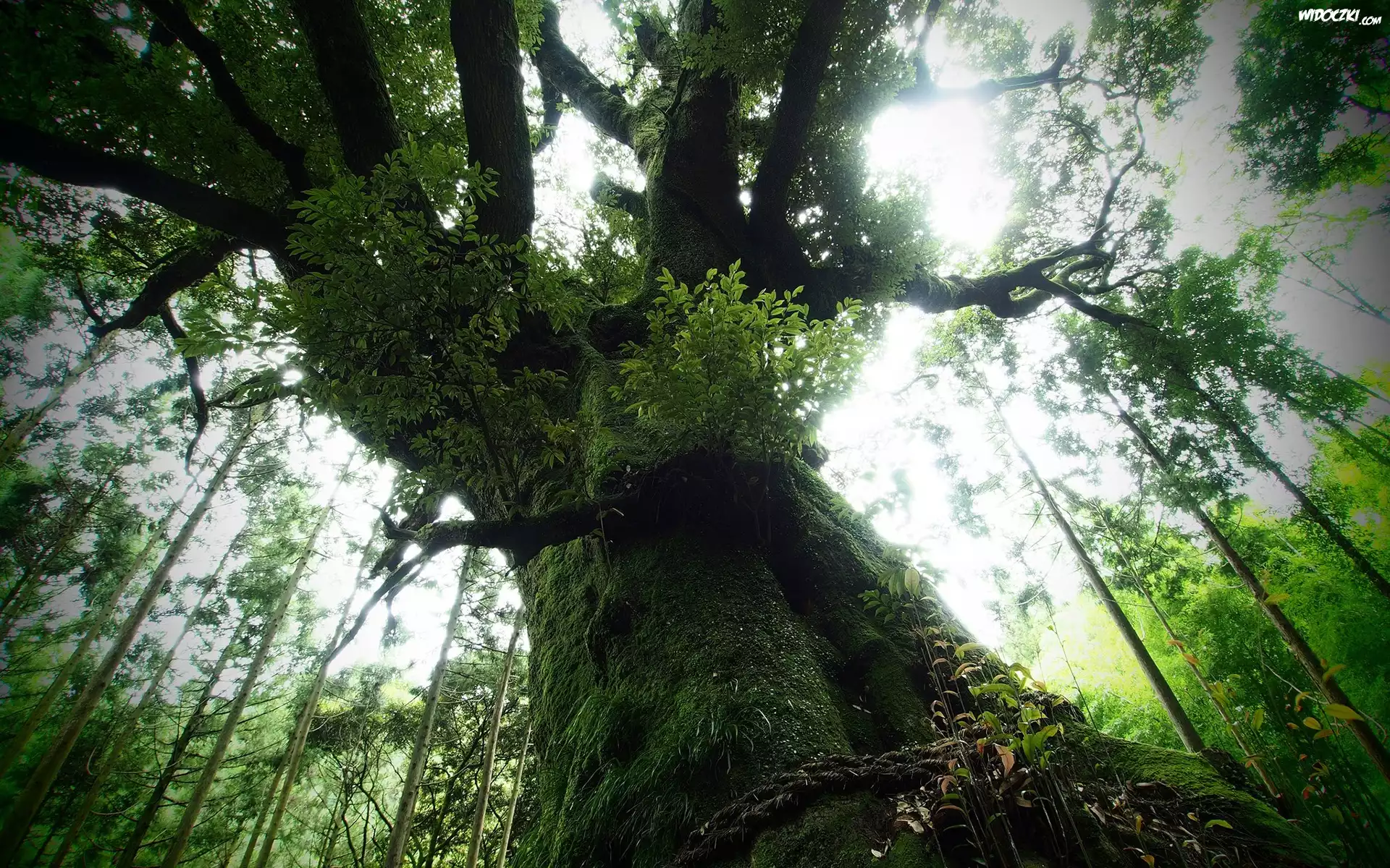 Zdjęcia, Stare, Omszałe, Drzewo, Las, Światło, Cień
