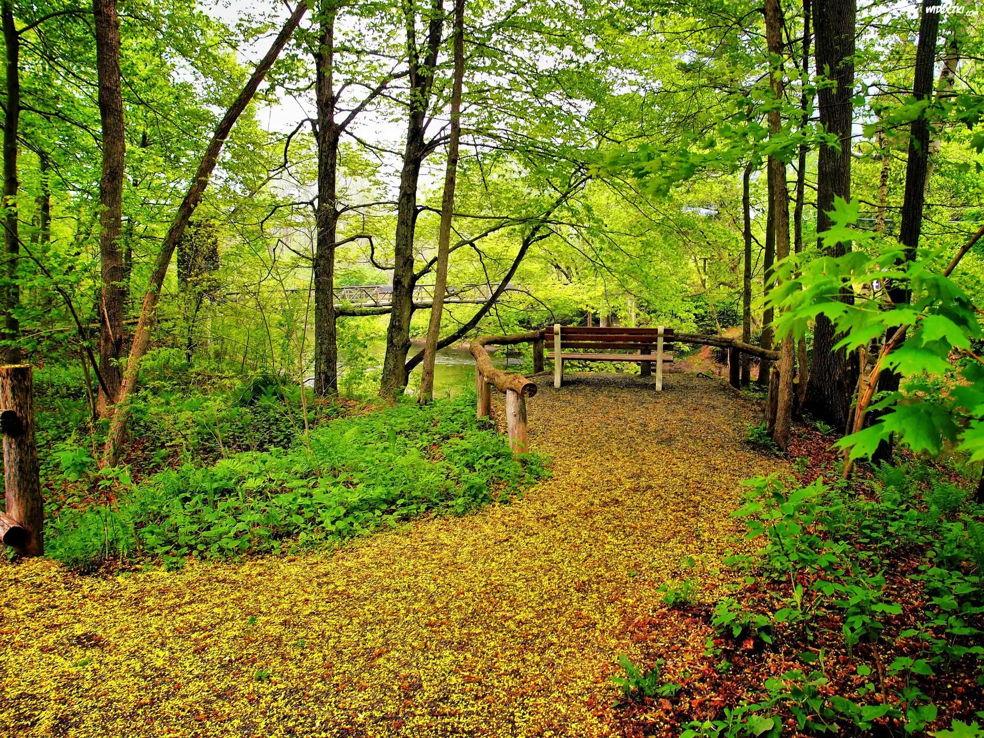 Zdjęcia, Stary, Park, Rzeczka, Mostek, Jesień