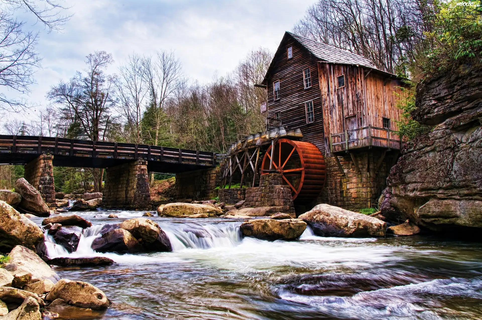 Zdjęcia, Stary, Młyn, Most, Rzeka, Kamienie