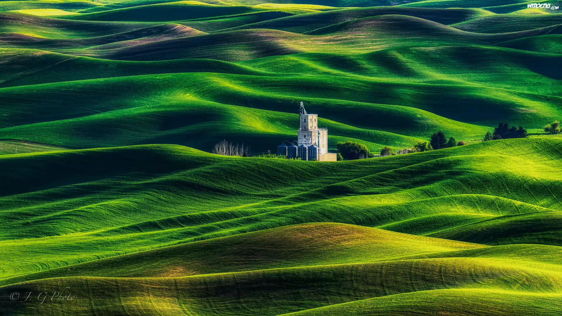 Wzgórza, Drzewa, Łąki, Pola, Budowla, Steptoe Butte State Park, Region Palouse, Stan Waszyngton, Stany Zjednoczone |