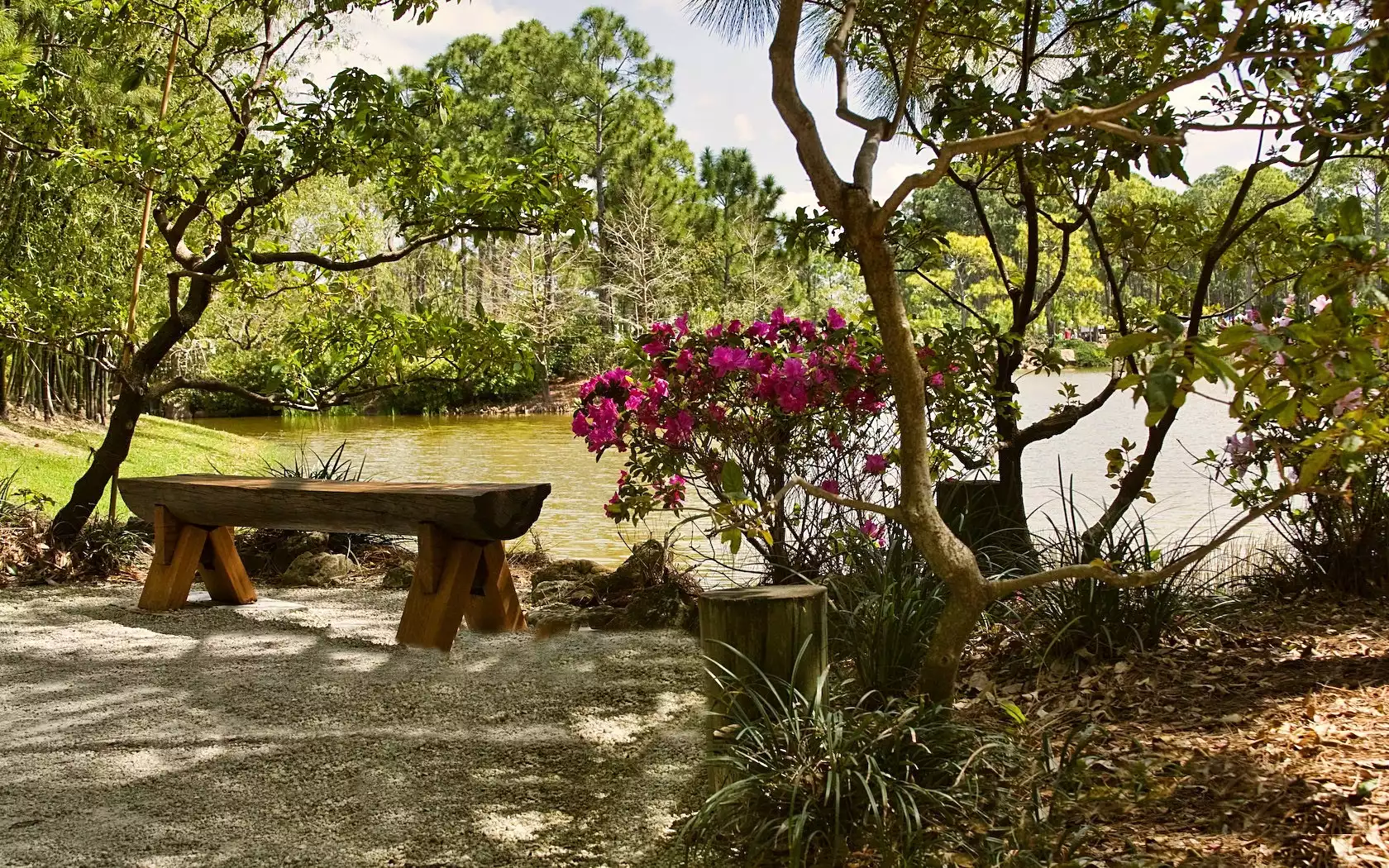 Zdjęcia, Staw, Drzewa, Ławka, Ogród
