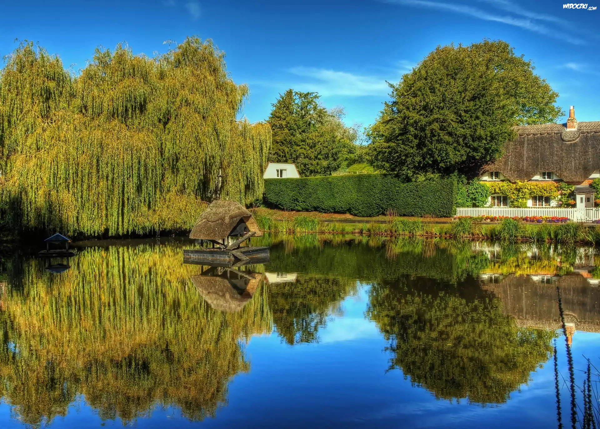 Staw, Drzewa, Dom, Wieś Crawley, Anglia
