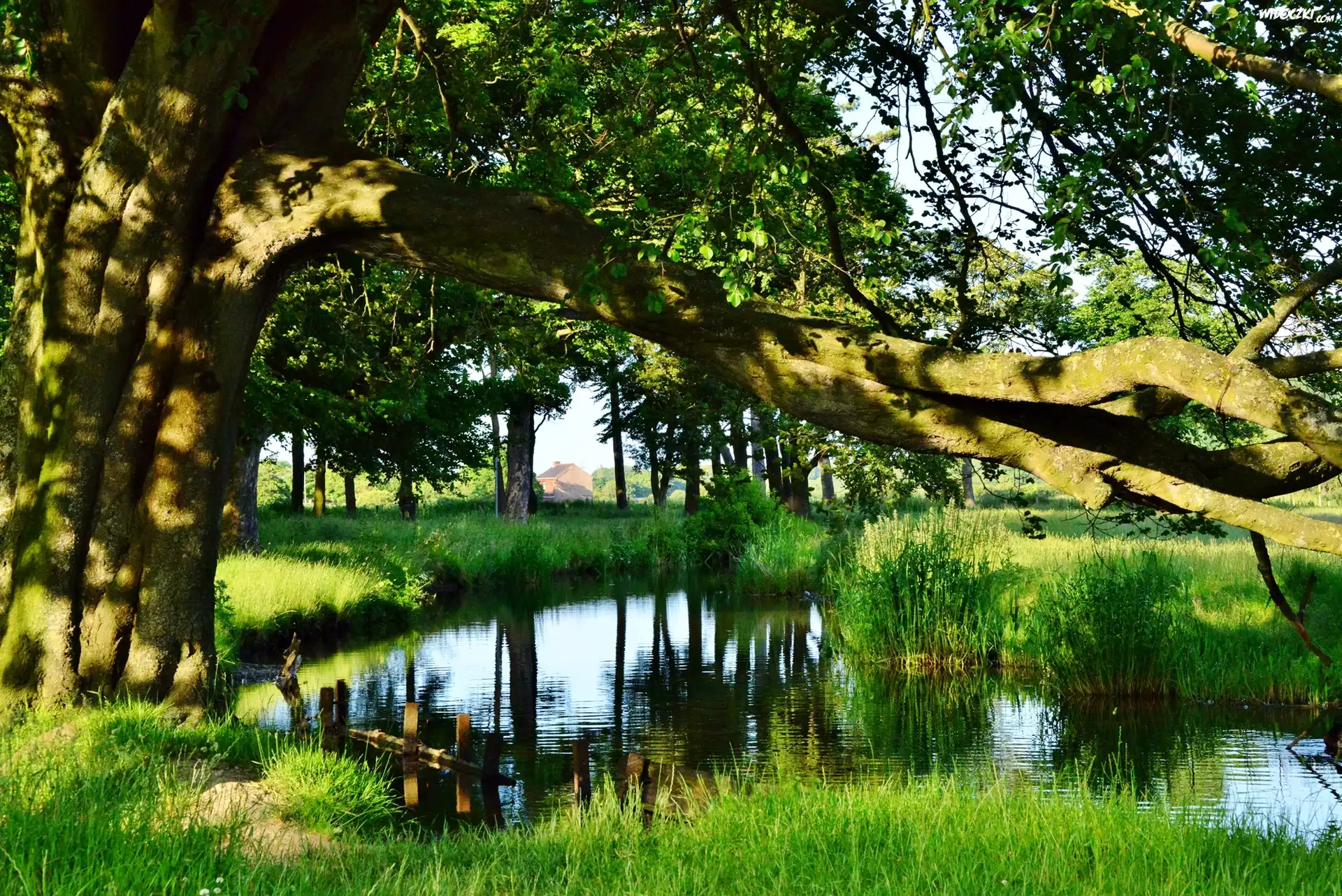 Zdjęcia, Staw, Drzewo, Dom, Wieś