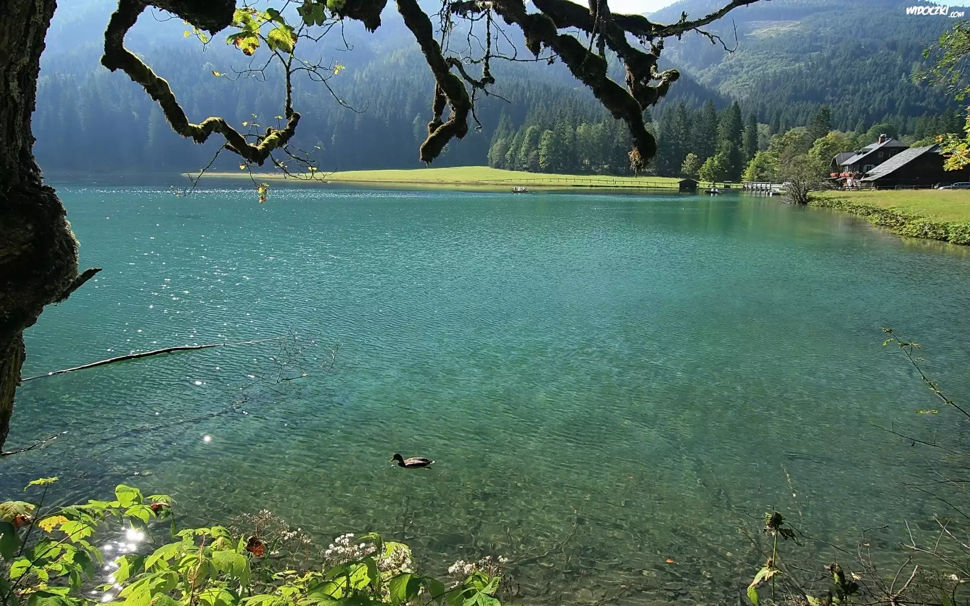 Zdjęcia, Staw, Góry, Drzewa, Kaczka