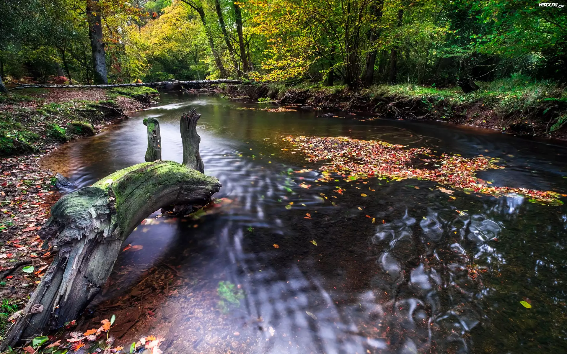 Zdjęcia, Staw, Las, Liście, Drzewa
