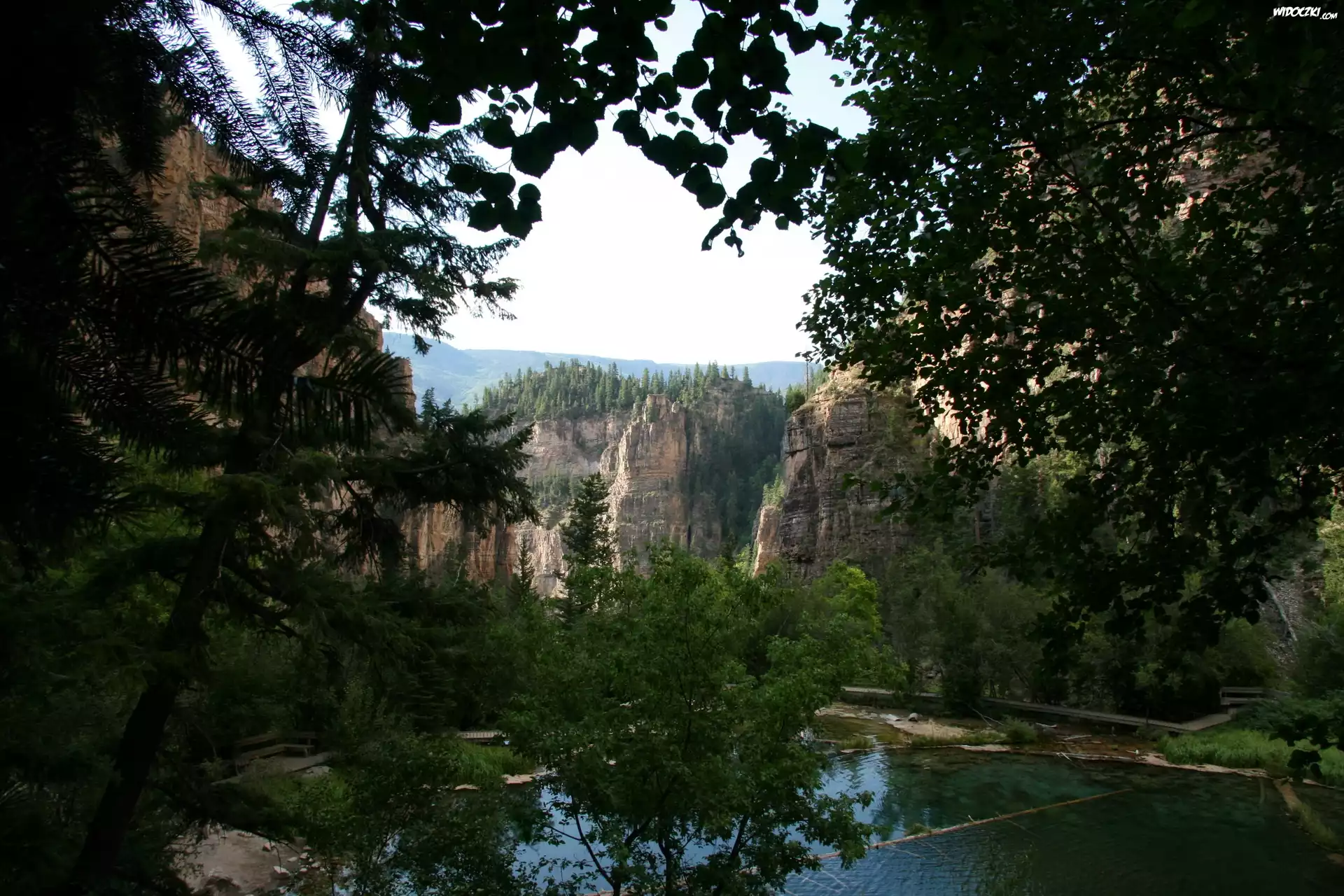 Zdjęcia, Staw, Drzewa, Góry, Mostek, Ławka