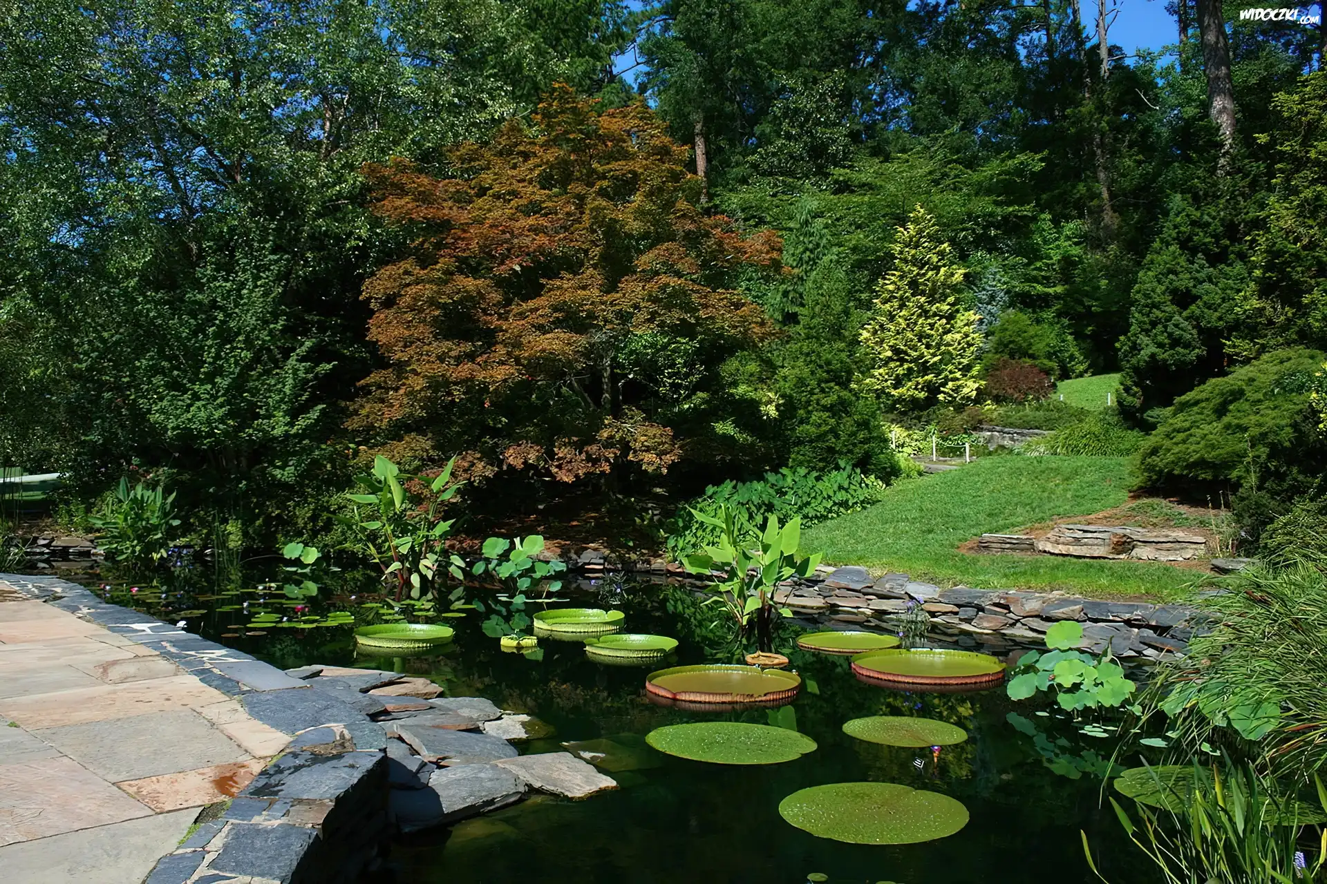 Zdjęcia, Ogród, Staw, Roślinność