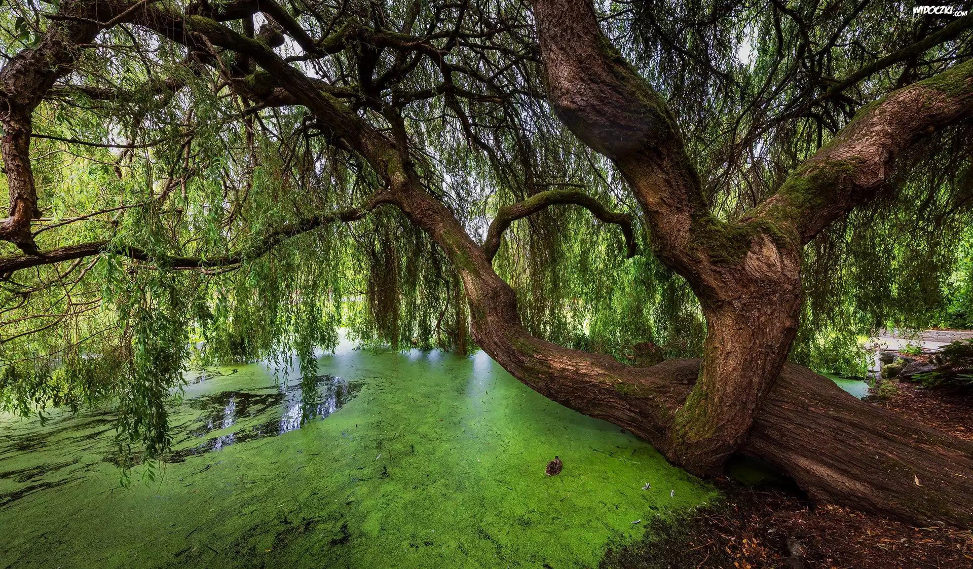 Zdj臋cia, Pochylone, Drzewo, Wierzba, Staw