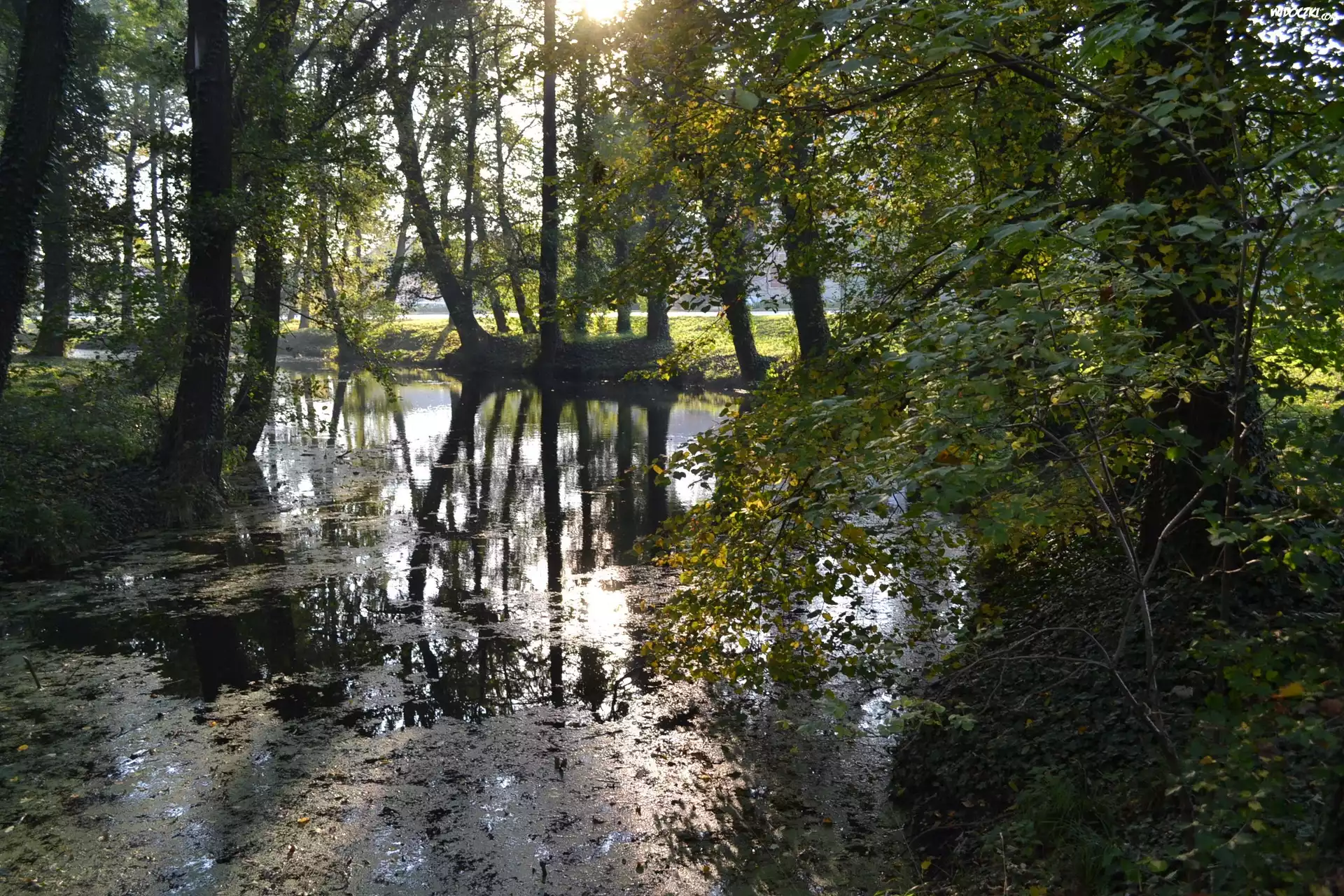 Zdjęcia, Staw, Drzewa, Porośnięte, Bluszczem