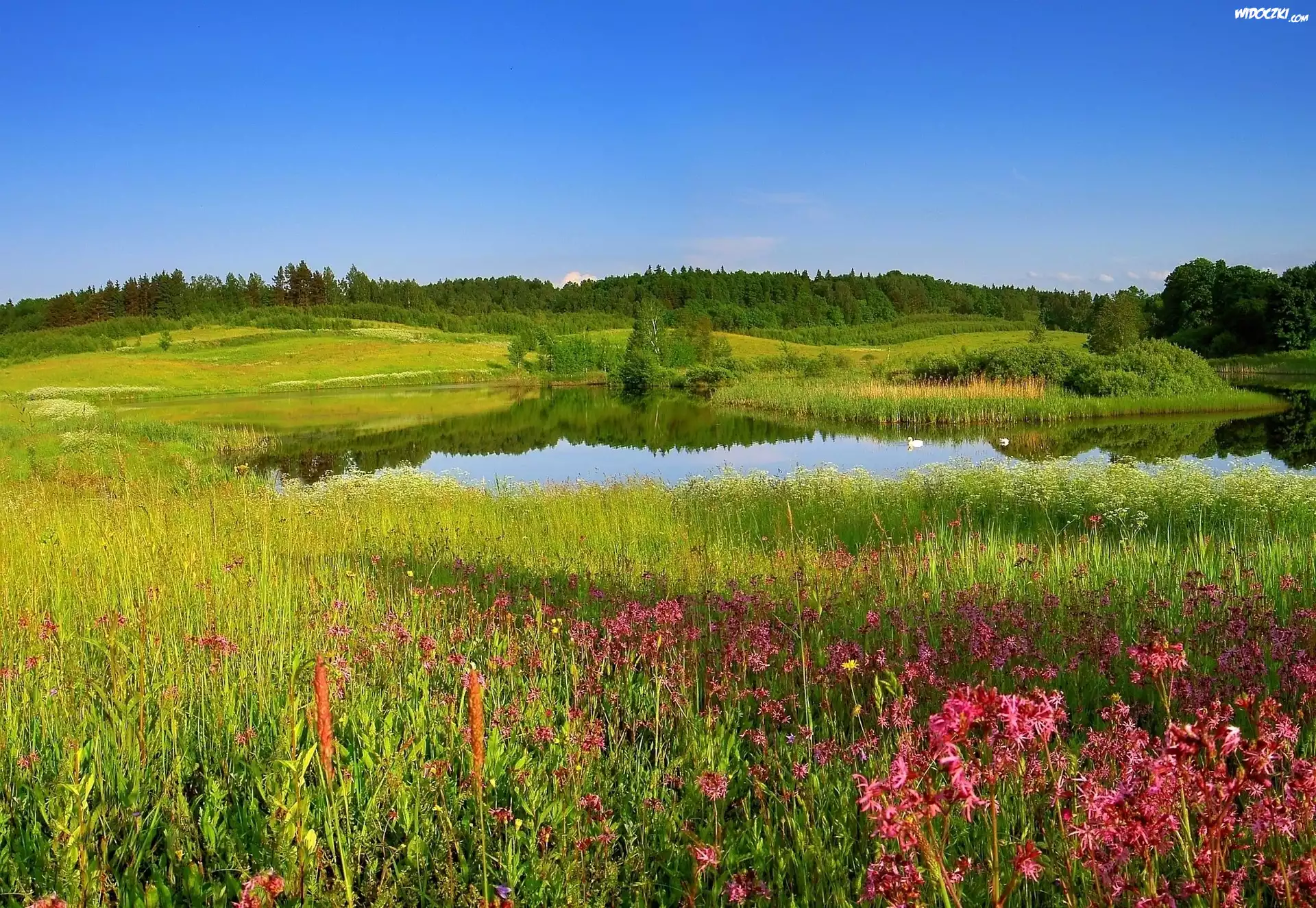 Zdjęcia, Łąka, Stawek, Kwiaty