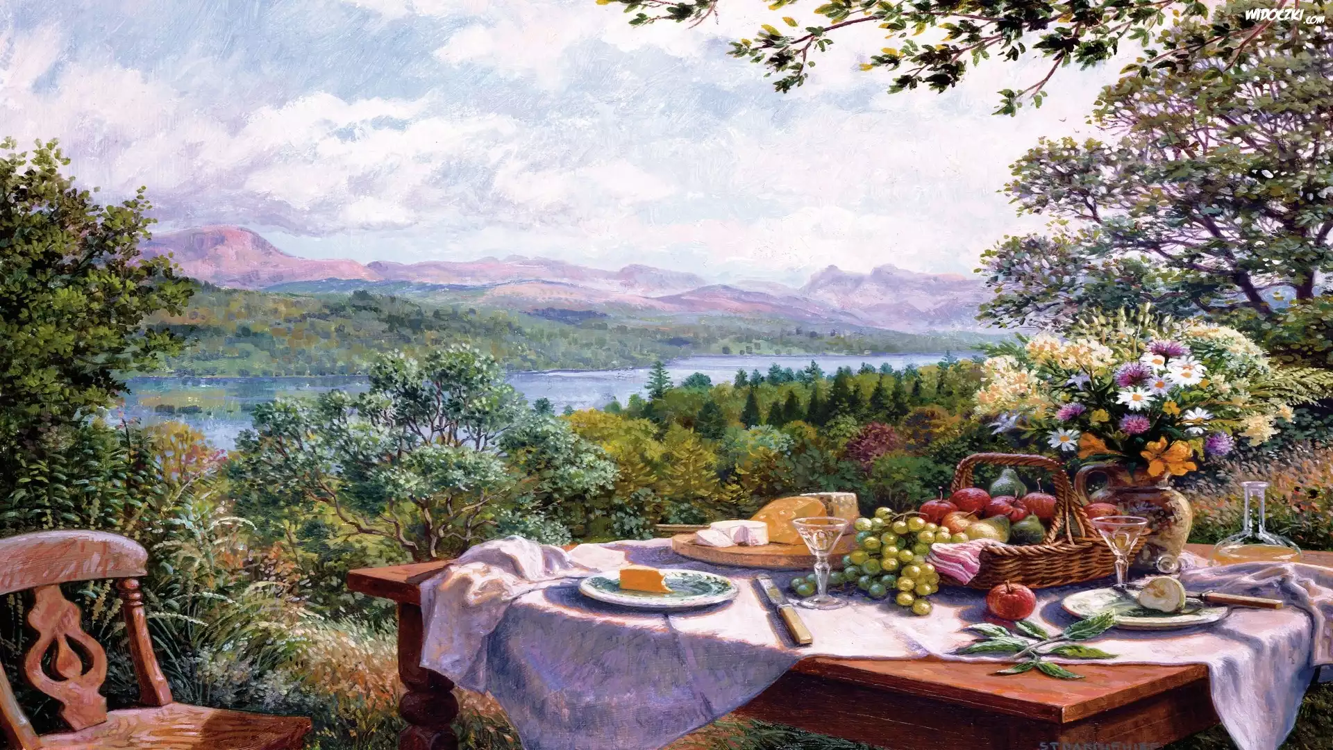 Zdjęcia, Stół, Śniadanie, Krajobraz, Obraz