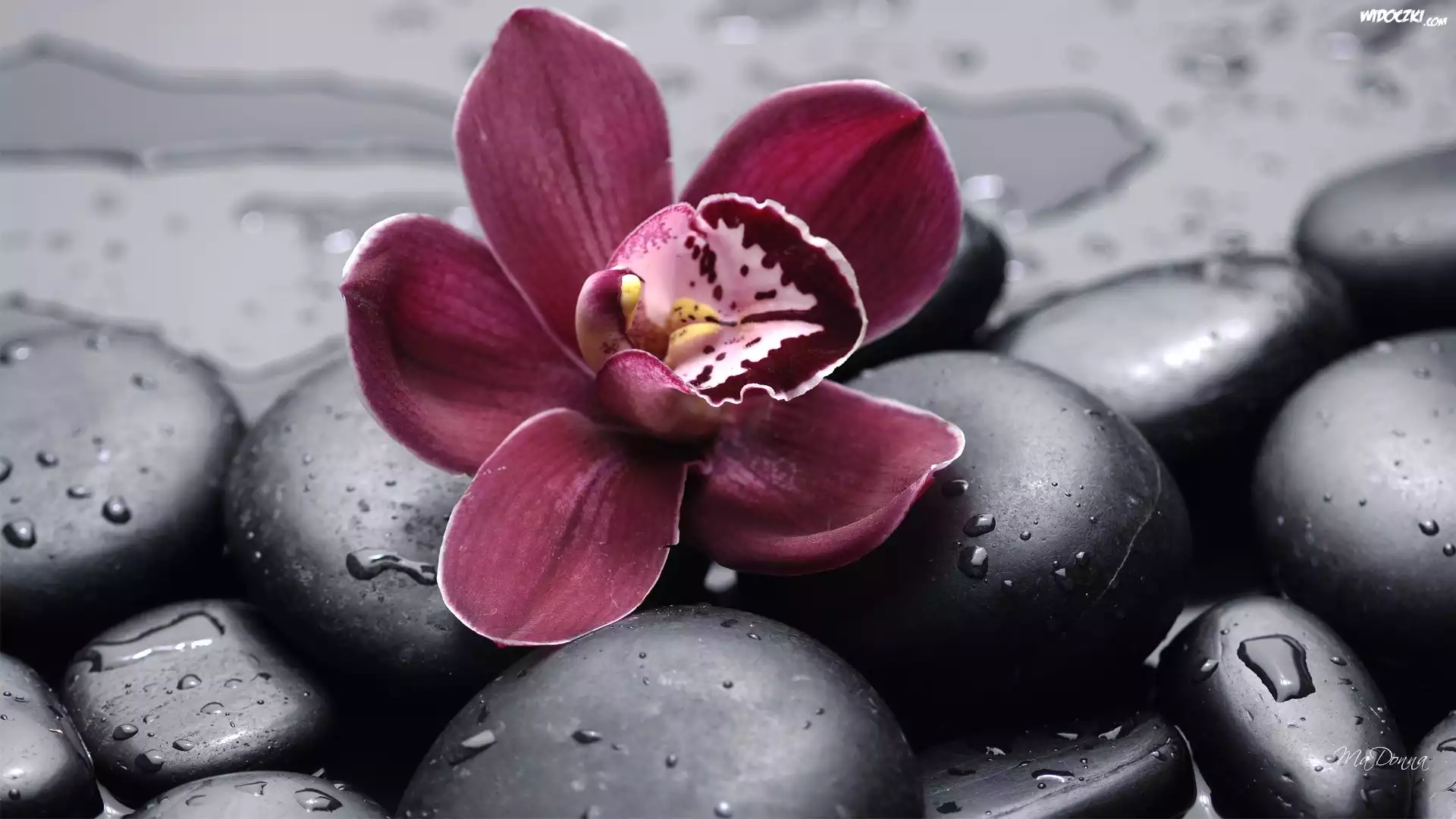 Zdjęcia, Storczyk, Kamienie, Krople, Wody