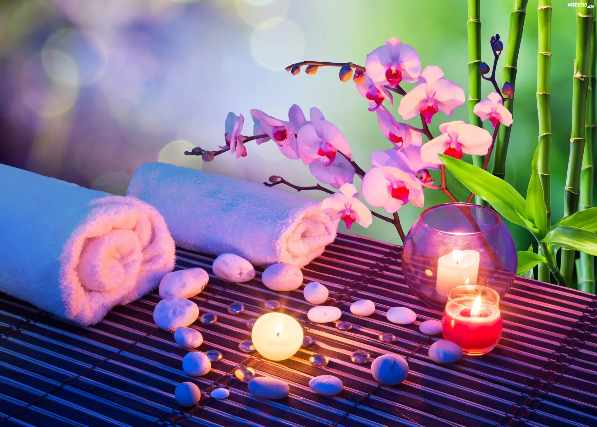 Zdjęcia, Storczyki, Świece, Kamienie, Kompozycja, SPA