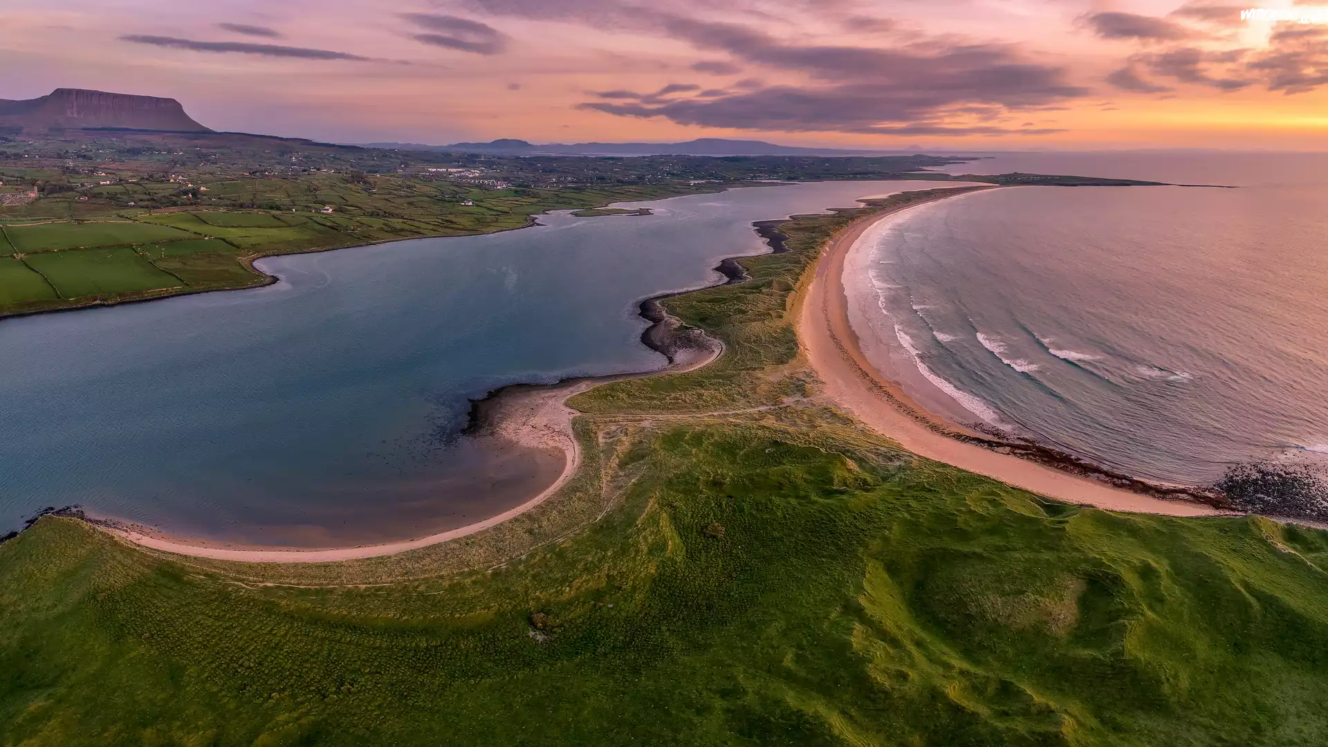 Zdjęcia, Wybrzeże, Plaża, Streedagh Beach, Góra, Ben Bulben, Morze, Hrabstwo Sligo, Irlandia