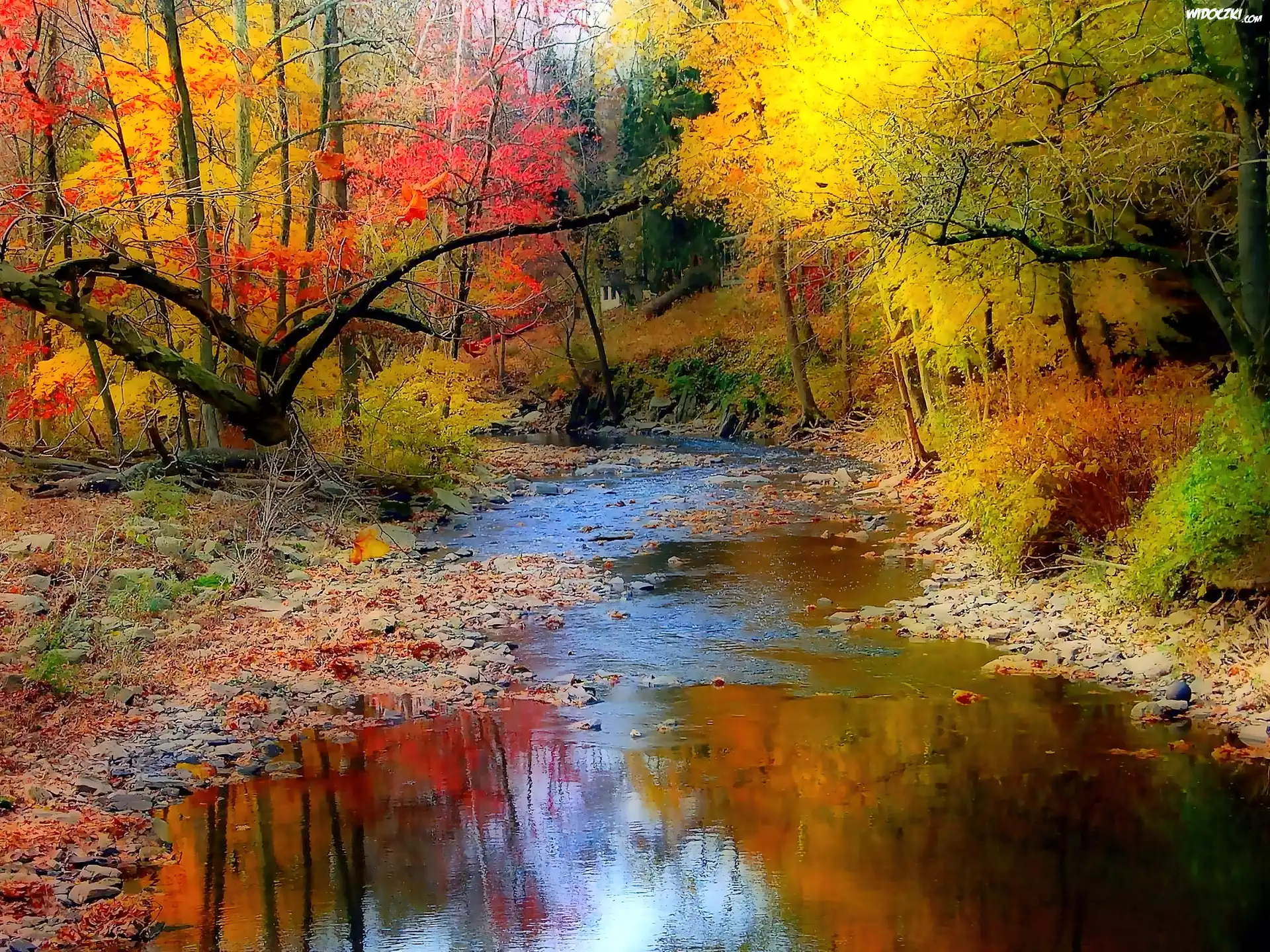 Zdjęcia, Las, Strumyk, Jesień
