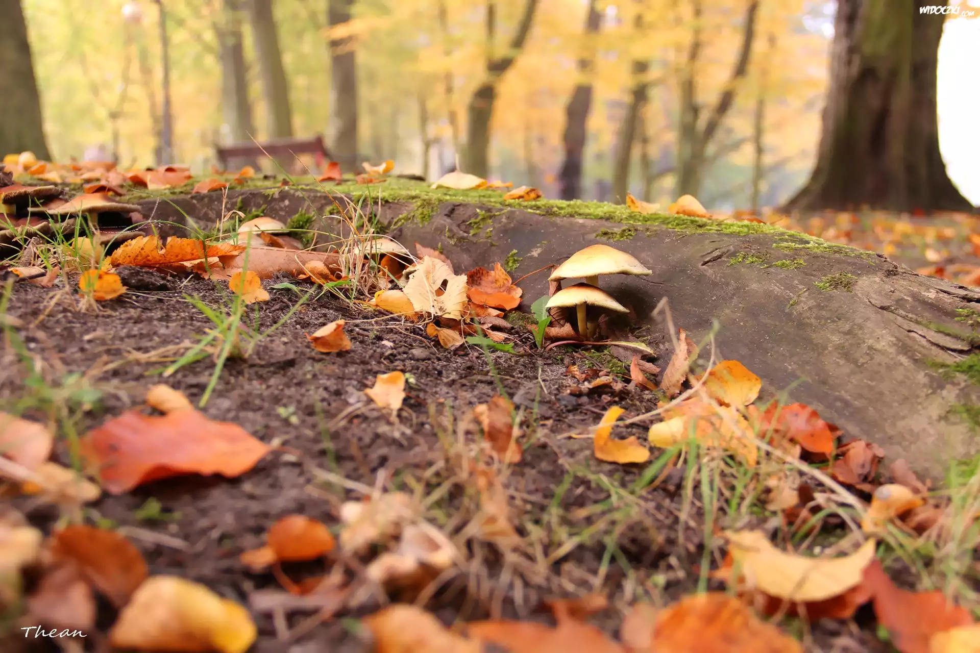 Zdjęcia, Suche, Liście, Grzybki, Korzeń, Park