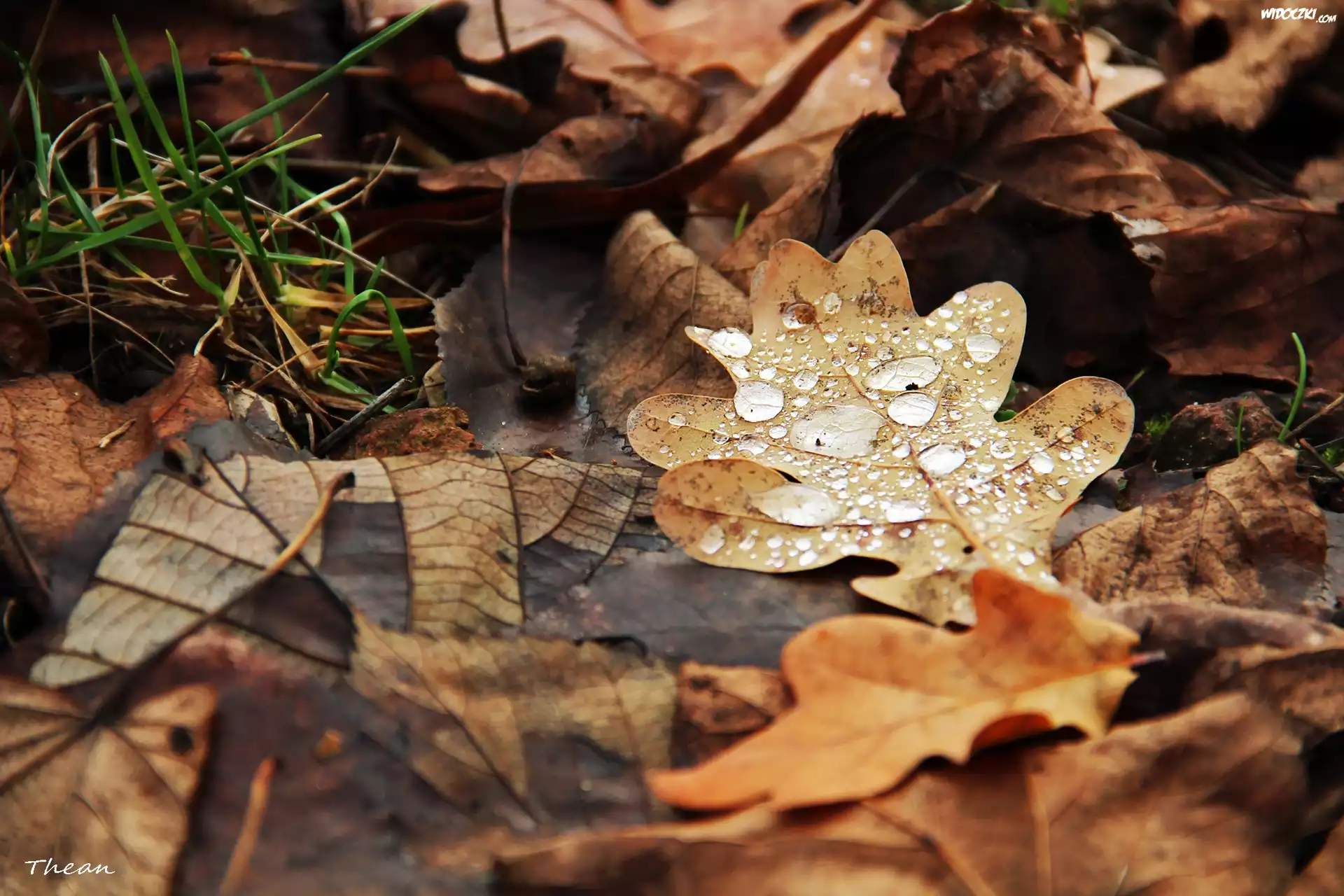 Zdjęcia, Suche, Liście, Krople, Rosy