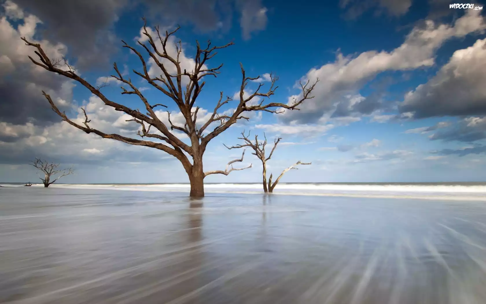 Zdjęcia, Suche, Drzewa, Morze, Plaża