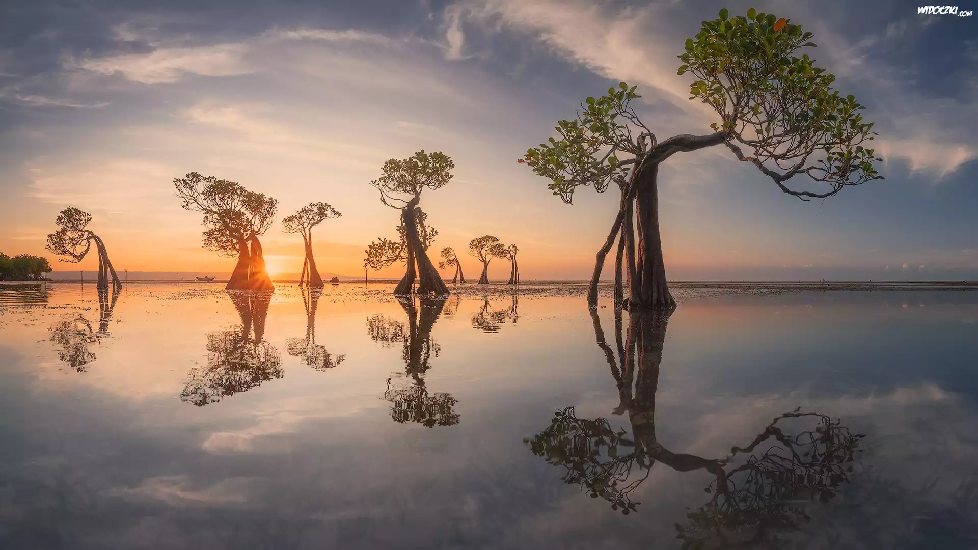 Indonezja, Plaża, Walakiri Beach, Drzewa, Wyspa Sumba, Waingapu, Promienie słońca, Morze