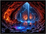 Skały, Jaskinia, Przebijające światło, Woda, Człowiek, AI