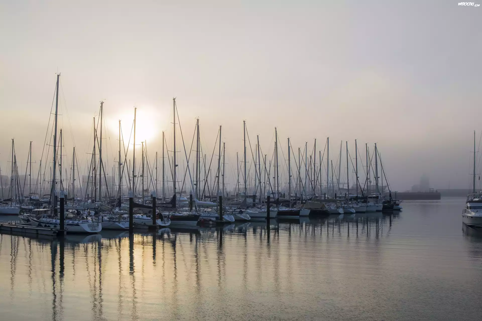 Żaglówki, Świt, Mgła, Wschód słońca