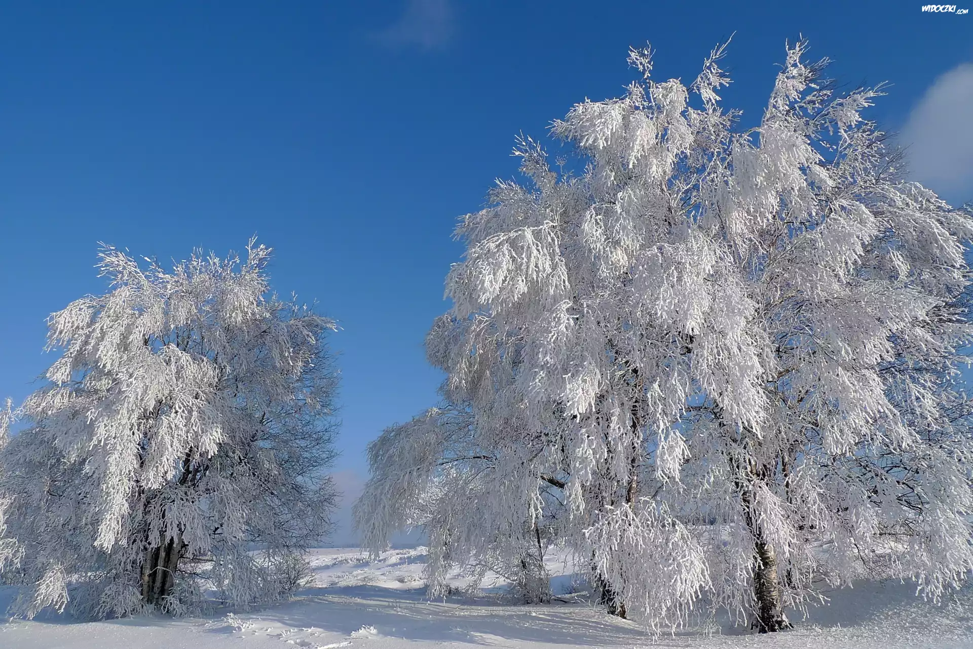 Zdjęcia, Drzewa, Szadź, Śnieg