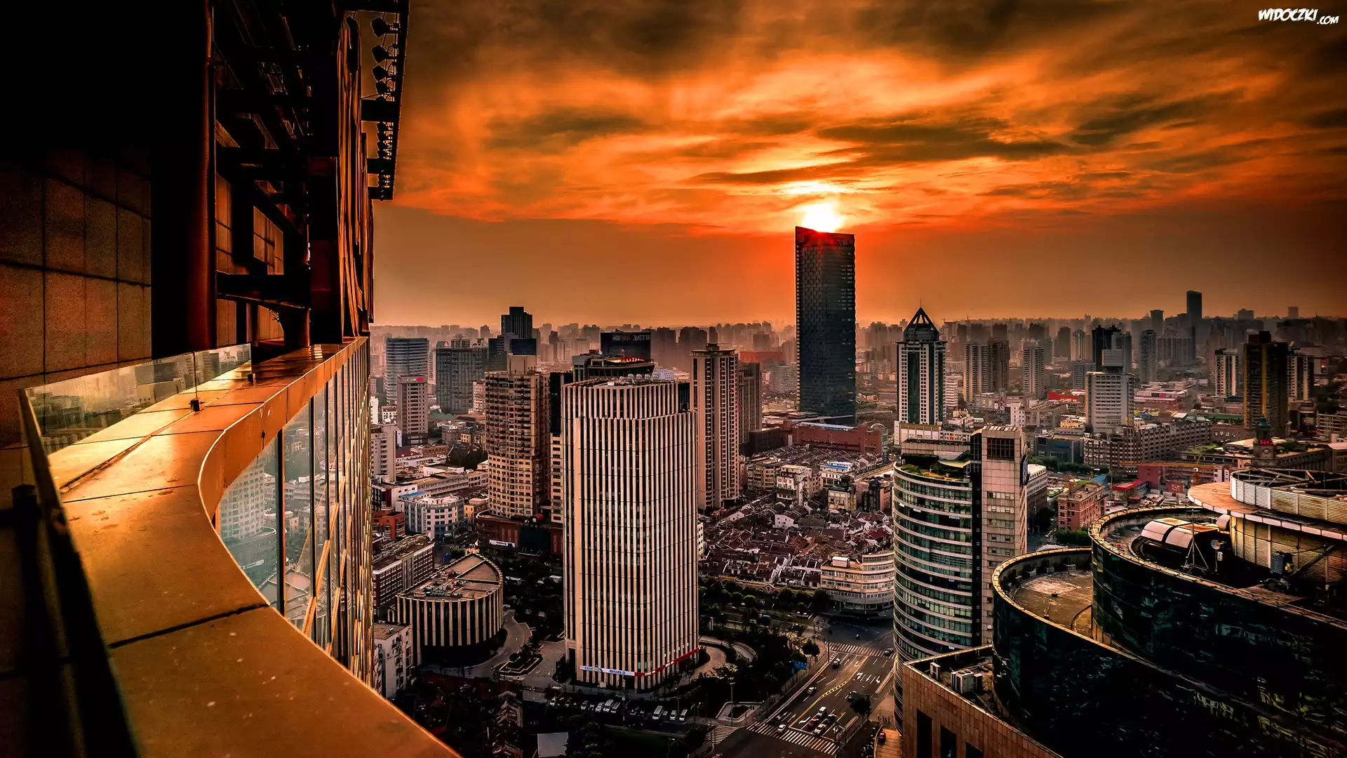 Zdjęcia, Szanghaj, Zachód słońca, Drapacze chmur