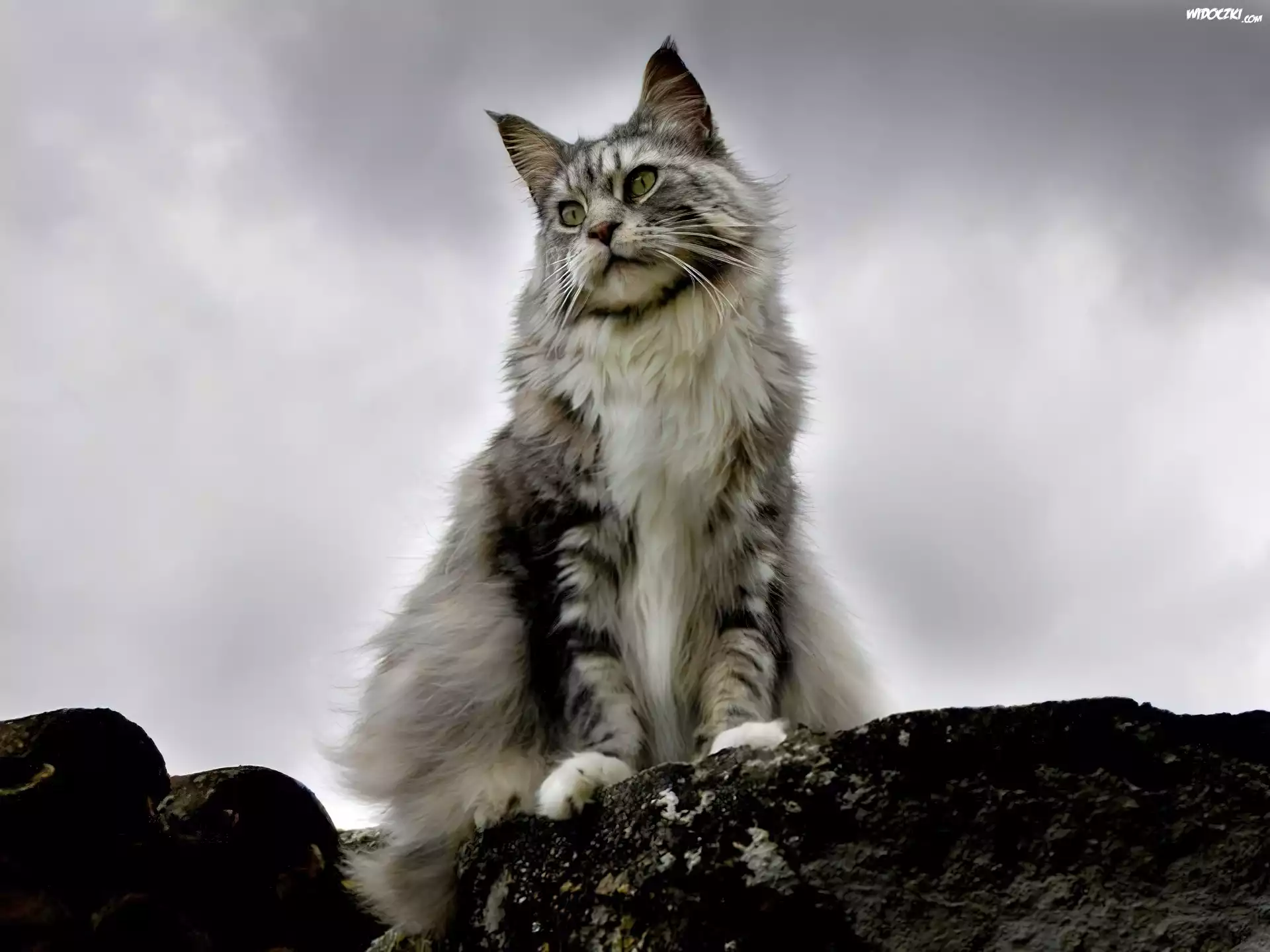 Zdjęcia, Szary, Kot, Maine coon, Chmury