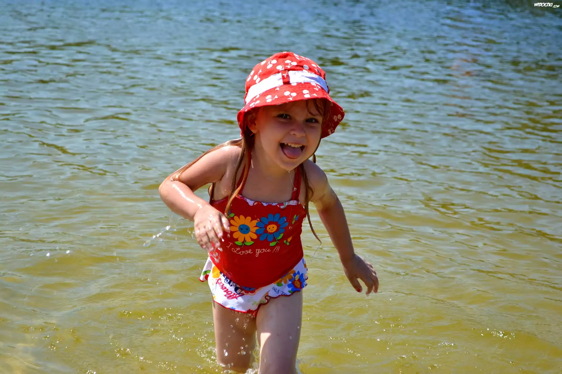 Szczęśliwa, Dziewczynka, Kąpiel, Morze