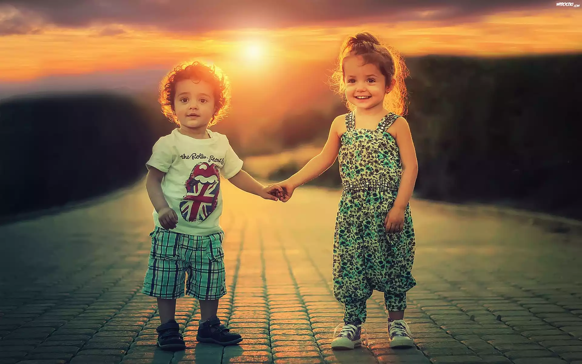 Zdjęcia, Szczęśliwe, Dzieci, Droga, Zachód Słońca