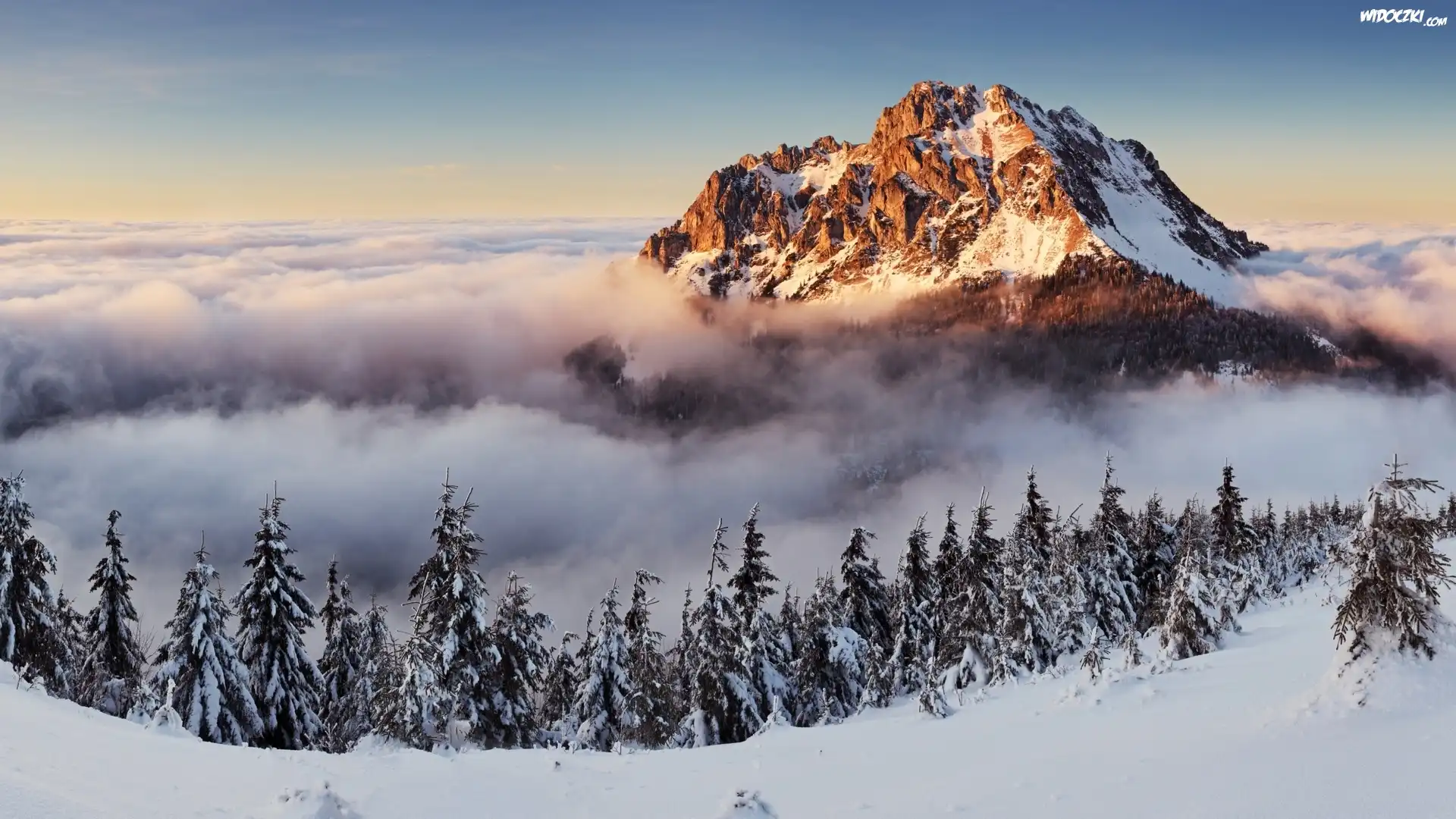 Zdjęcia, Szczyt, Góry, W, Chmurach, Zima