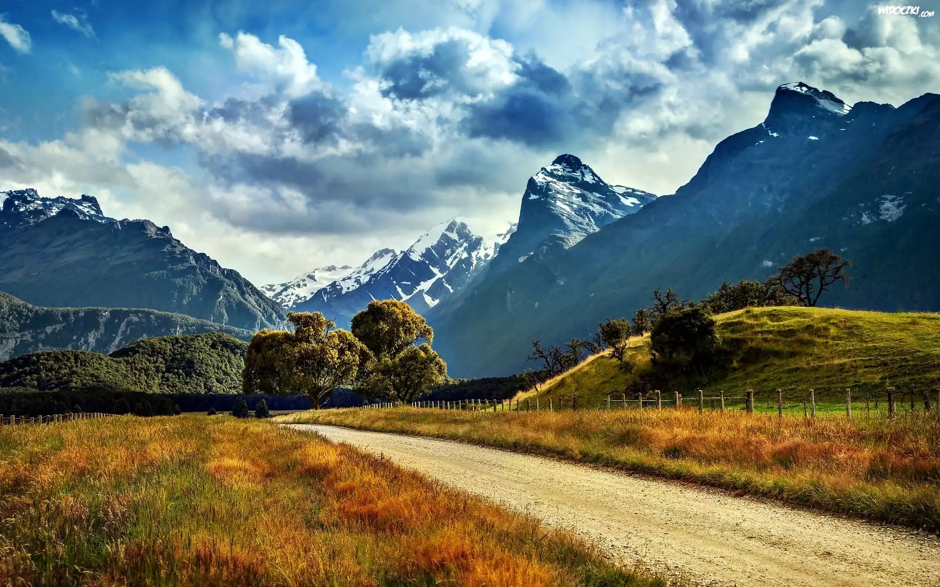 Las, Drzewa, Droga Góra, łąki Góra Wiosna, Góry, Łąka Kwiaty, Maki, Łąka Cztery, Pory, Roku Góra, Skały Chmury, Słońce Droga, Drzewa, Trawa, Kwiaty Góra, Wodospady, Paprocie Góra Jezioro, Góry, Chmury, Odbicie Żółte, Kwiaty, Łąka Łódka, Wybrzeże