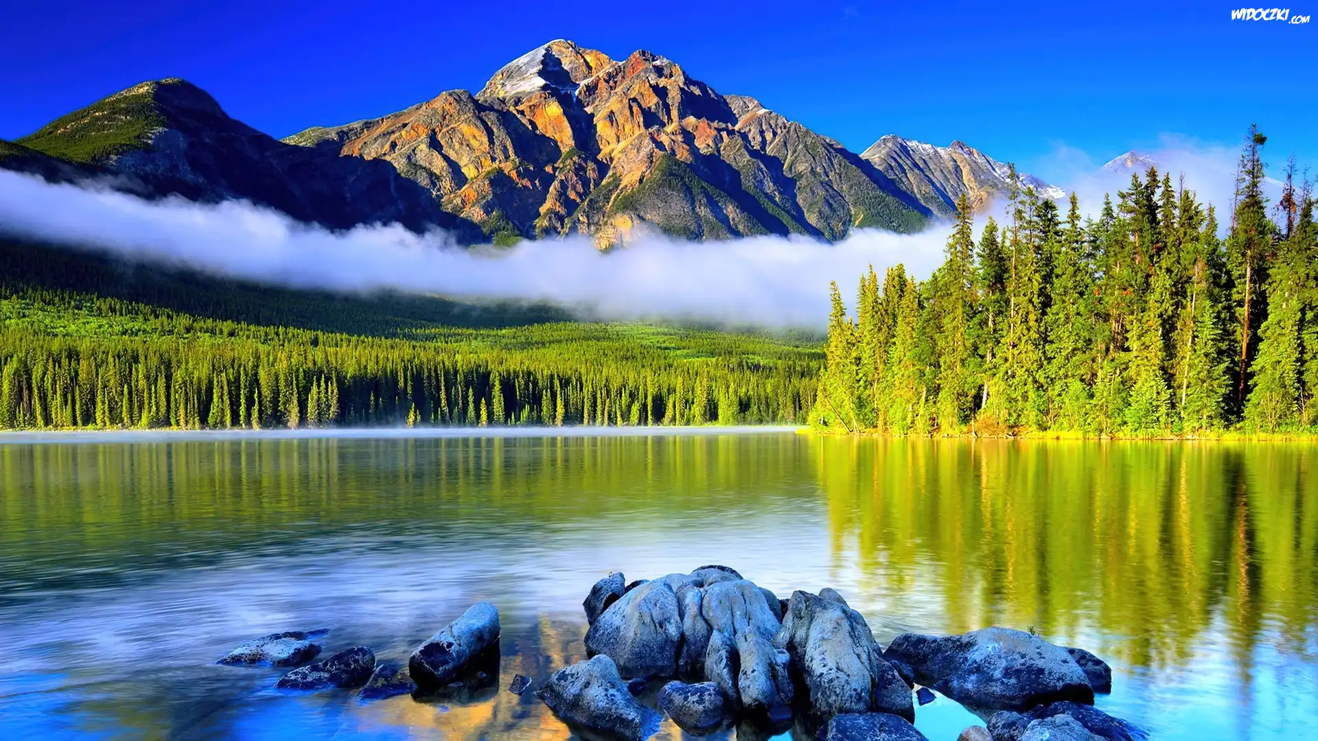 Zdj臋cia, Szczyty, Jezioro, Kamienie, Choinki