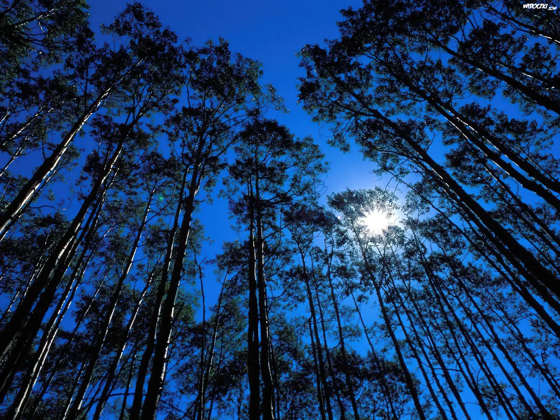 Zdjęcia, Szczyty, Drzew, Przebijające, Słońce