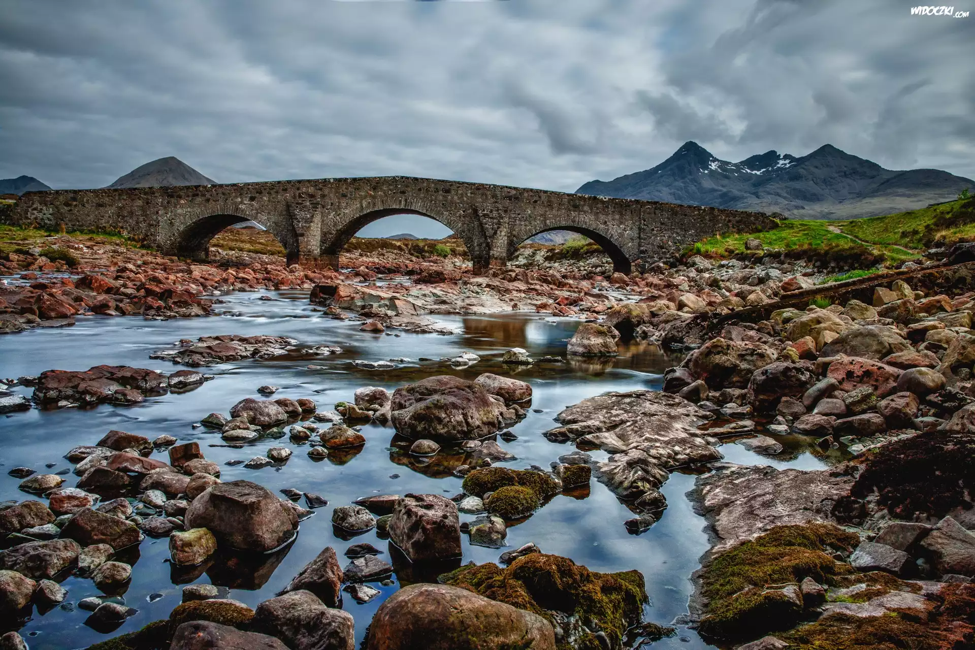 Szkocja, Rzeka, Kamienie, Most, Góry