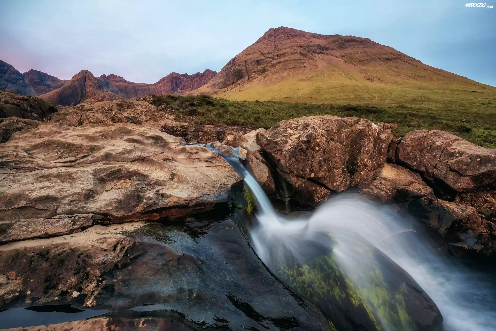 Zdjęcia, Szkocja, Wyspa Skye, Góry, Skały, Wodospad